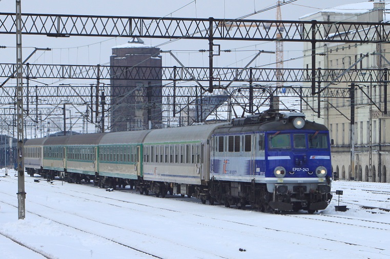 EP07-243 z pociągiem TLK42104/5 „Kormoran”, relacji Bielsko Biała – Olsztyn. (Katowice 2013-04-02) |