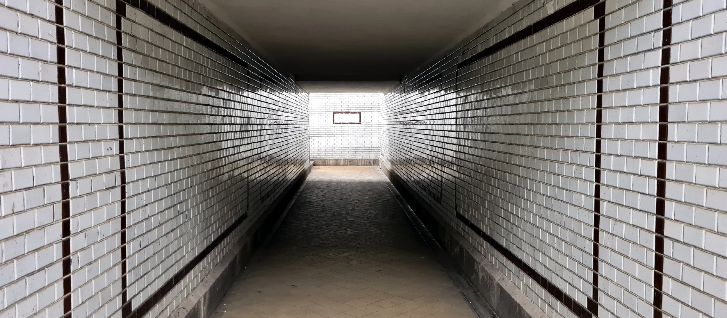 Tunel prowadzący do wyjścia na ul. Ogrodową i dawny peron kolejki do Złotego stoku. (Kamieniec Ząbkowicki, 2022-01-09)