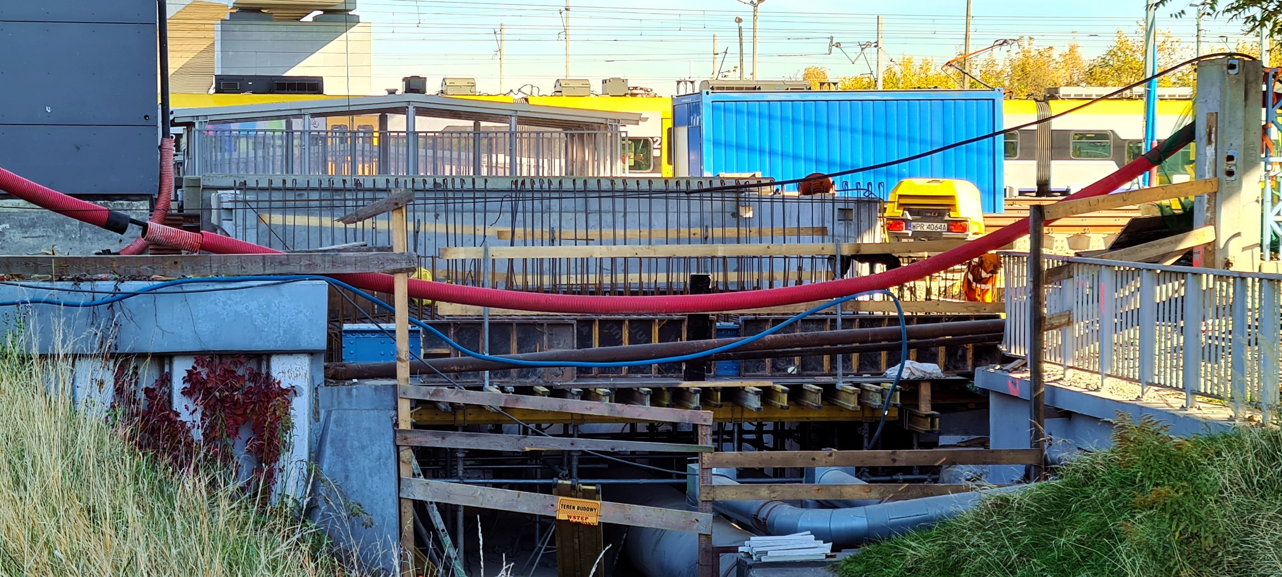 Powstało zbrojenie przęsła nad ciepłociągiem, w ciągu przyszłego toru 3. (Kraków Płaszów, 2022-10-18) |