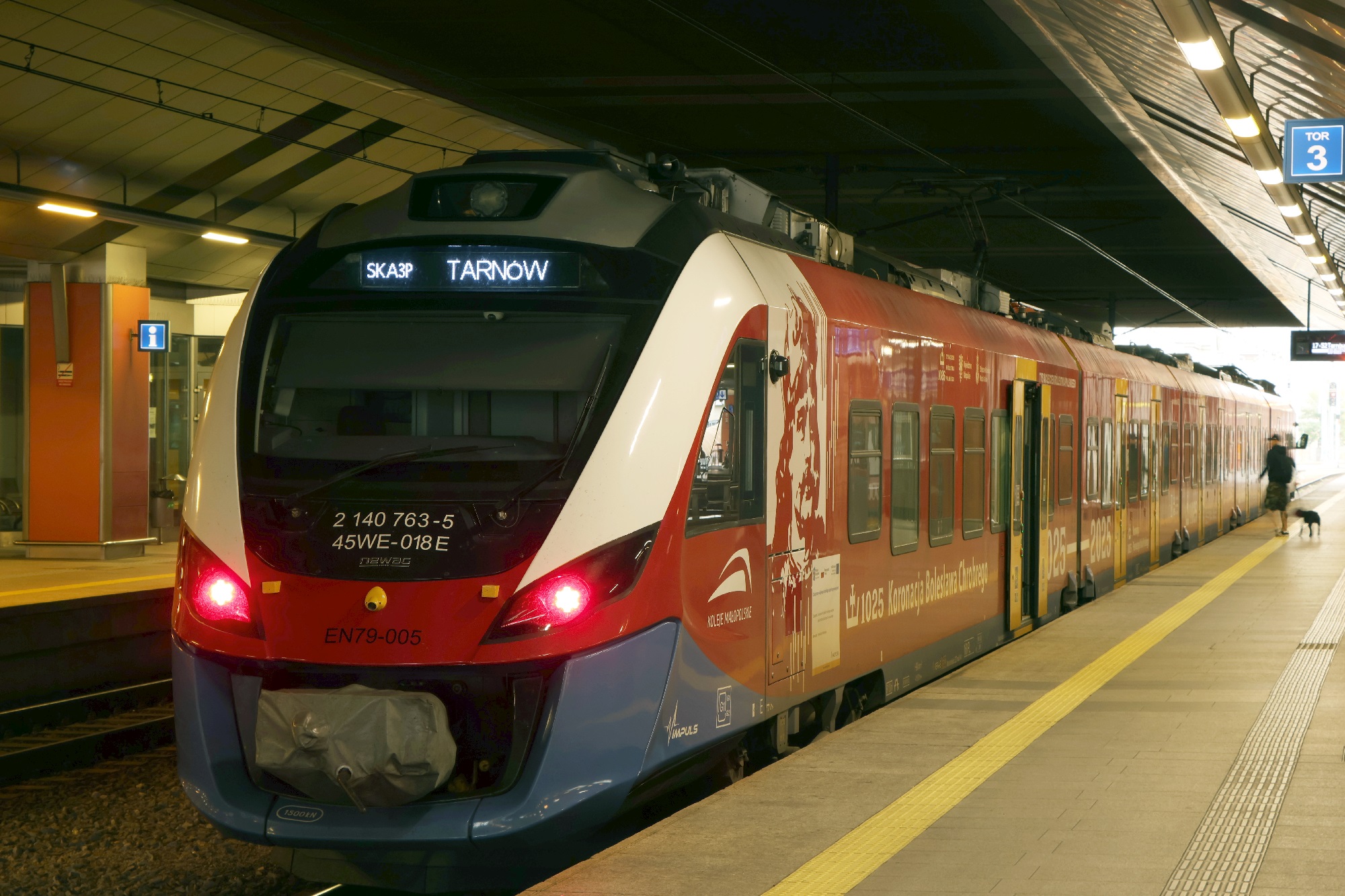 2025, 2025-09-18, wrzesień, wrzesień2025, Małopolska, Małopolskie, Kraków, KrakówGłówny, Newag, Impuls, Jednostka, EZT, EMU, KMŁ, KolejeMałopolskie, EN79, EN79-005, 45WE, 45WE-018, Okleina, KoronacjaBolesławaChrobrego, SKA, SzybkaKolejAglomeracyjna, KML33131, SKA3, SKA3P, Jaskółka |