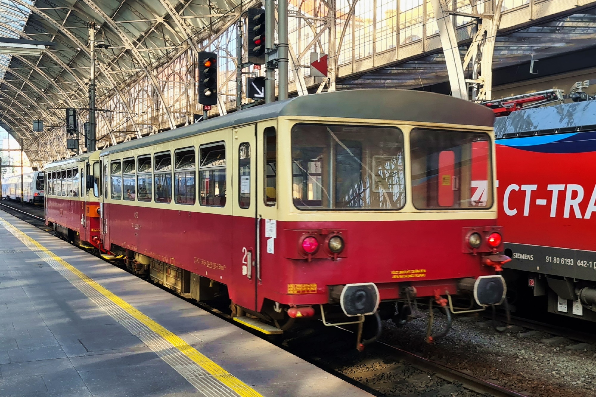 2025, 2025-07-05, Lipiec, Lipiec2025, Czechy, Česko, Praga, Praha, Prahahl.n., PrahaHlavníNádraží, ČeskéDráhy, ČD, ČeskoslovenskéStátníDráhy, ČSD, Motorak, 810, ČD810, řada810, M152, M1520535, 95545810535-5, Doczepa, 010, ČD010, řada010, 705424-29420-9, Baafx, 505424-29185-2, Btax780, 2kl, T88, BrdskýMotoráček |