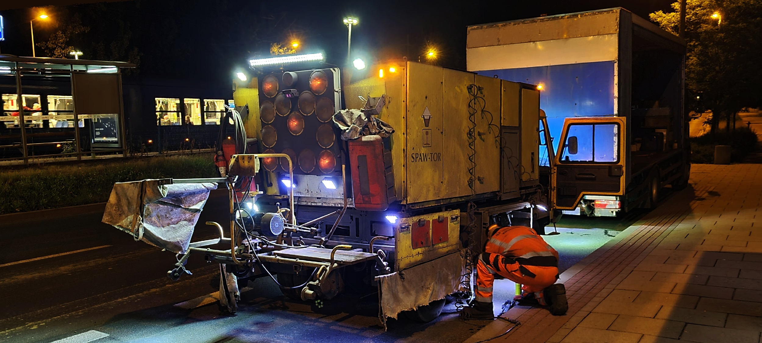 Multicar M 26 w zatoce przystanku „Piaski Nowe”, przygotowywany do nocnego szlifowania torów tramwajowych wzdłuż ulicy Nowosądeckiej. (Kraków Główny2025-07-04) |
