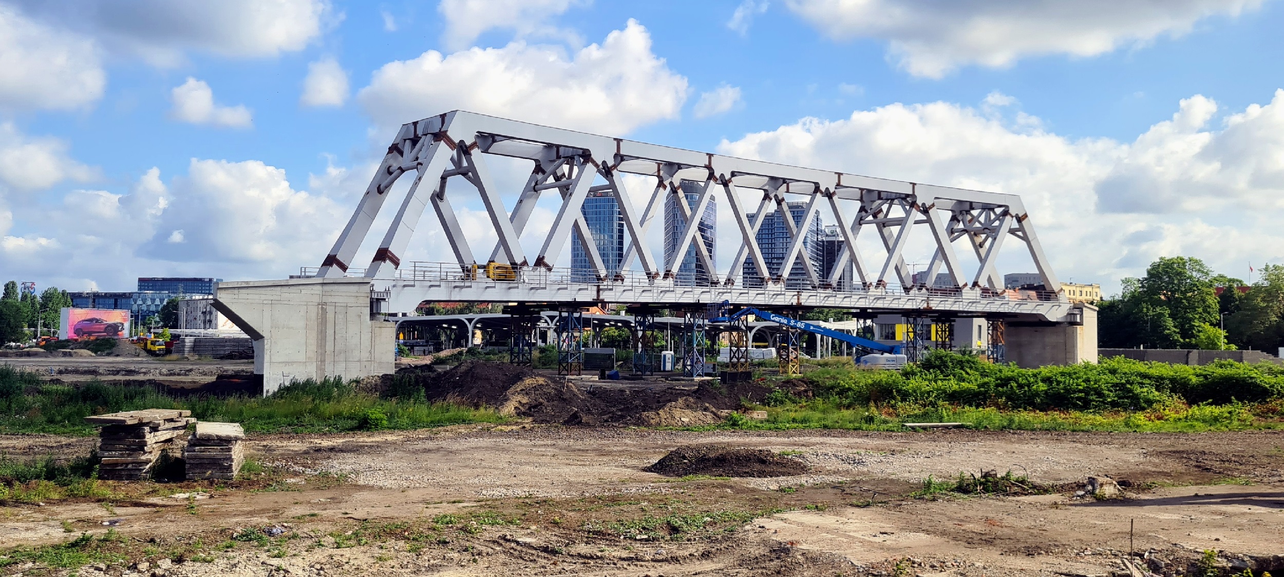 Niemal gotowy „krzywy wiadukt”, łączący północne tory stacji z bazą Kś. (Katowice, 2025-06-28) |