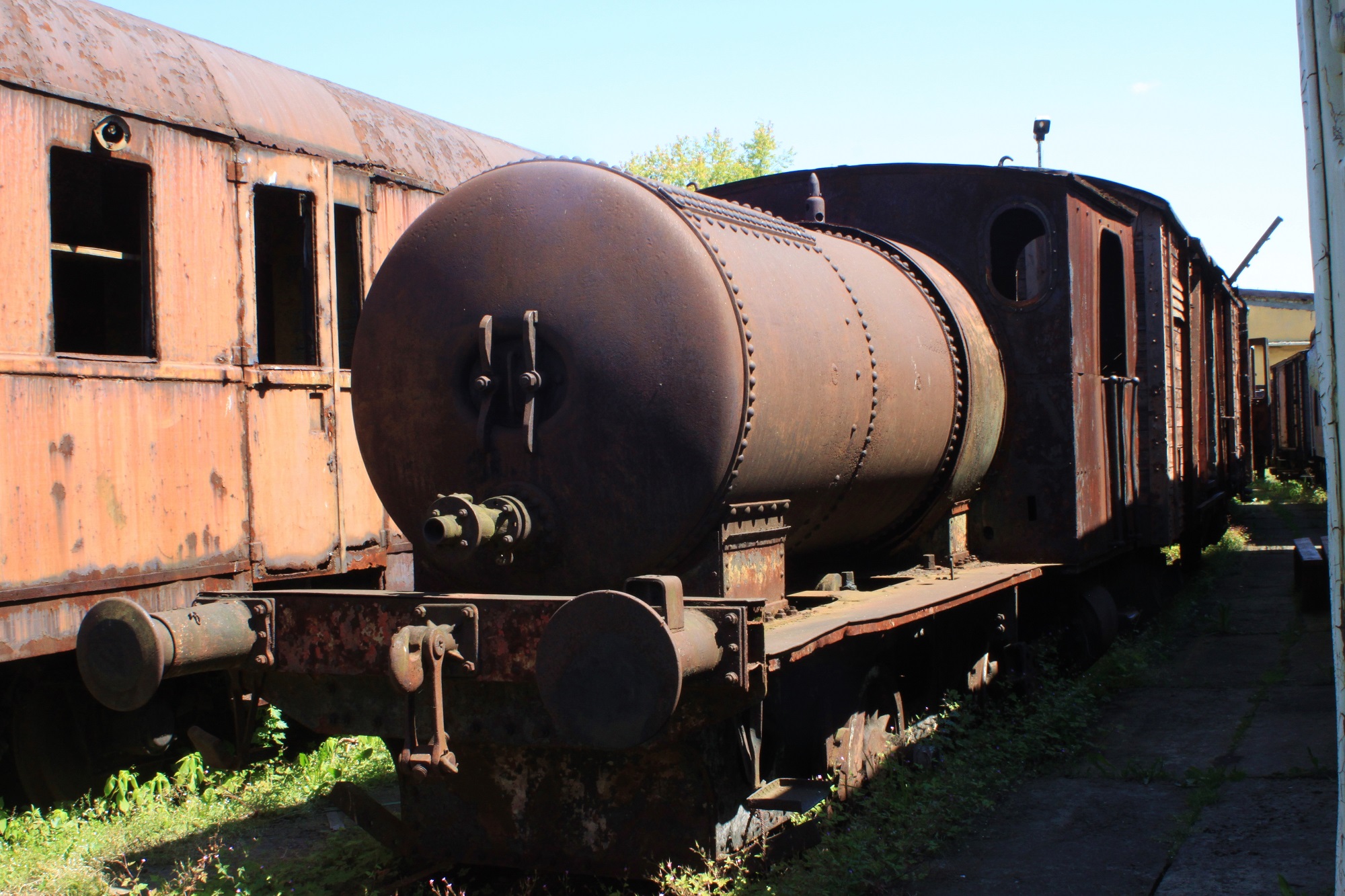 Wyciągnięty z krzeszowickiej umieralni pasożyt Tkbb-2747, po zachodniej stronie hali. Za dwa lata (od momentu wykonania zdjęcia) znajdzie sobie miejsce na terenie Starej Przędzalni w Żyrardowie. (Chabówka, 2013-07-09) |