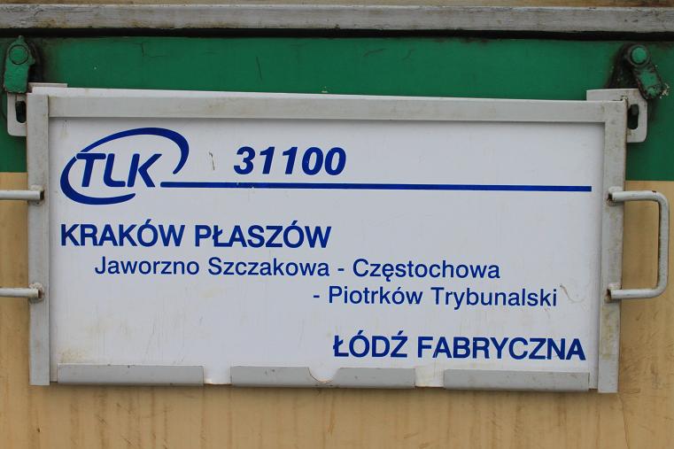 Tablica TLK31100 do Łodzi Fabrycznej, niegdyś zwanego Reymontem. (Kraków Płaszów2010-02-24) |
