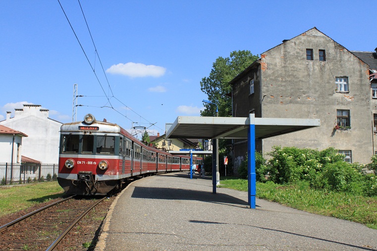 Widok na peron. EN71-008 jako regio 30231 z Oświęcimia, przechodzący na regio 30132 odwrotnej relacji. (2011-05-29 Wieliczka Rynek) |