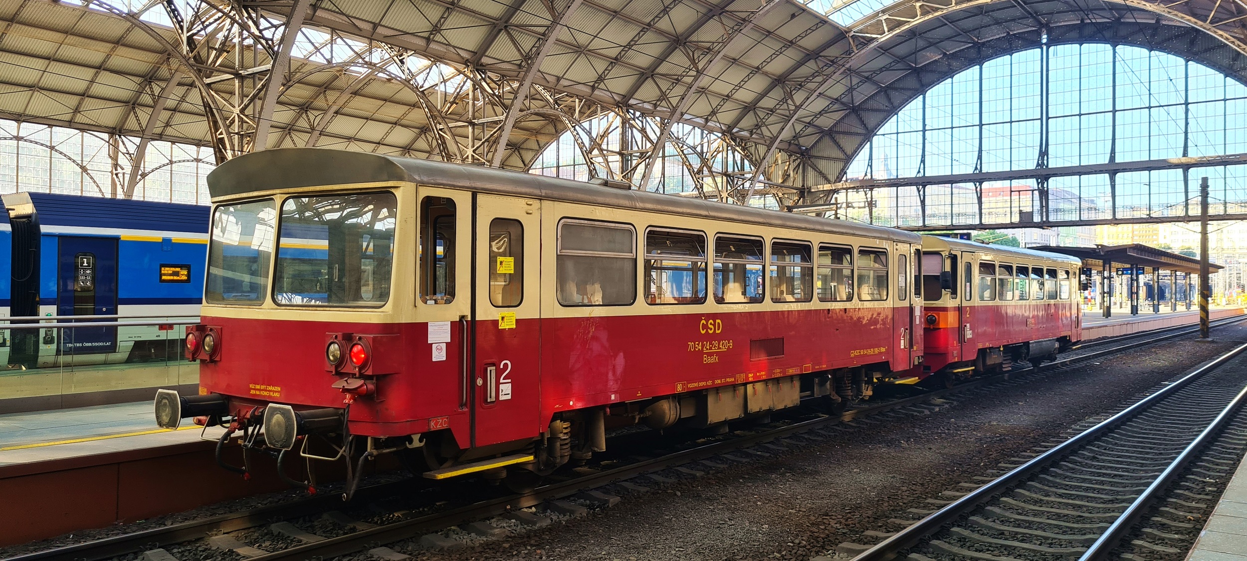 2025, 2025-07-05, Lipiec, Lipiec2025, Czechy, Česko, Praga, Praha, Prahahl.n., PrahaHlavníNádraží, ČeskéDráhy, ČD, ČeskoslovenskéStátníDráhy, ČSD, Motorak, 810, ČD810, řada810, M152, M1520535, 95545810535-5, Doczepa, 010, ČD010, řada010, 705424-29420-9, Baafx, 505424-29185-2, Btax780, 2kl, T88, BrdskýMotoráček |