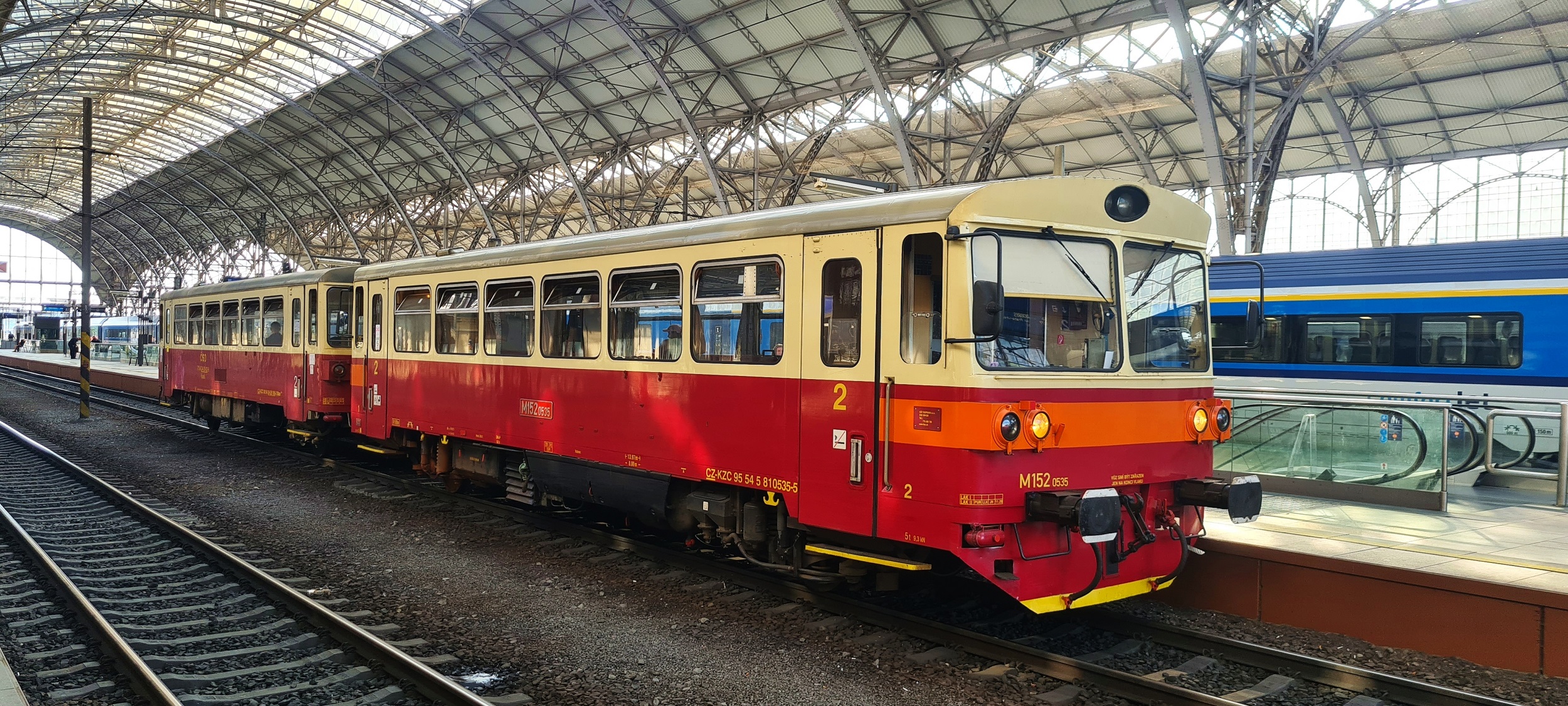 2025, 2025-07-05, Lipiec, Lipiec2025, Czechy, Česko, Praga, Praha, Prahahl.n., PrahaHlavníNádraží, ČeskéDráhy, ČD, ČeskoslovenskéStátníDráhy, ČSD, Motorak, 810, ČD810, řada810, M152, M1520535, 95545810535-5, Doczepa, 010, ČD010, řada010, 705424-29420-9, Baafx, 505424-29185-2, Btax780, 2kl, T88, BrdskýMotoráček |