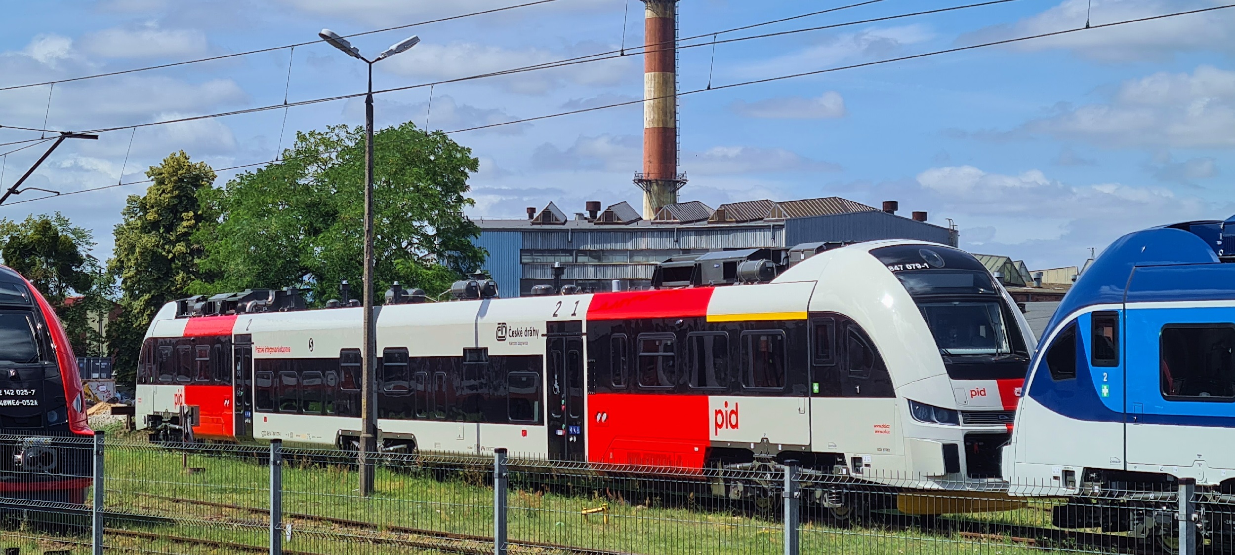 847 079-1 na terenie zakładów PESA. Jednostka pomalowana w schemat PID – Pražská integrovaná doprava (Praska Komunikacja Zintegrowana). (Bydgoszcz, 2025-06-30) |