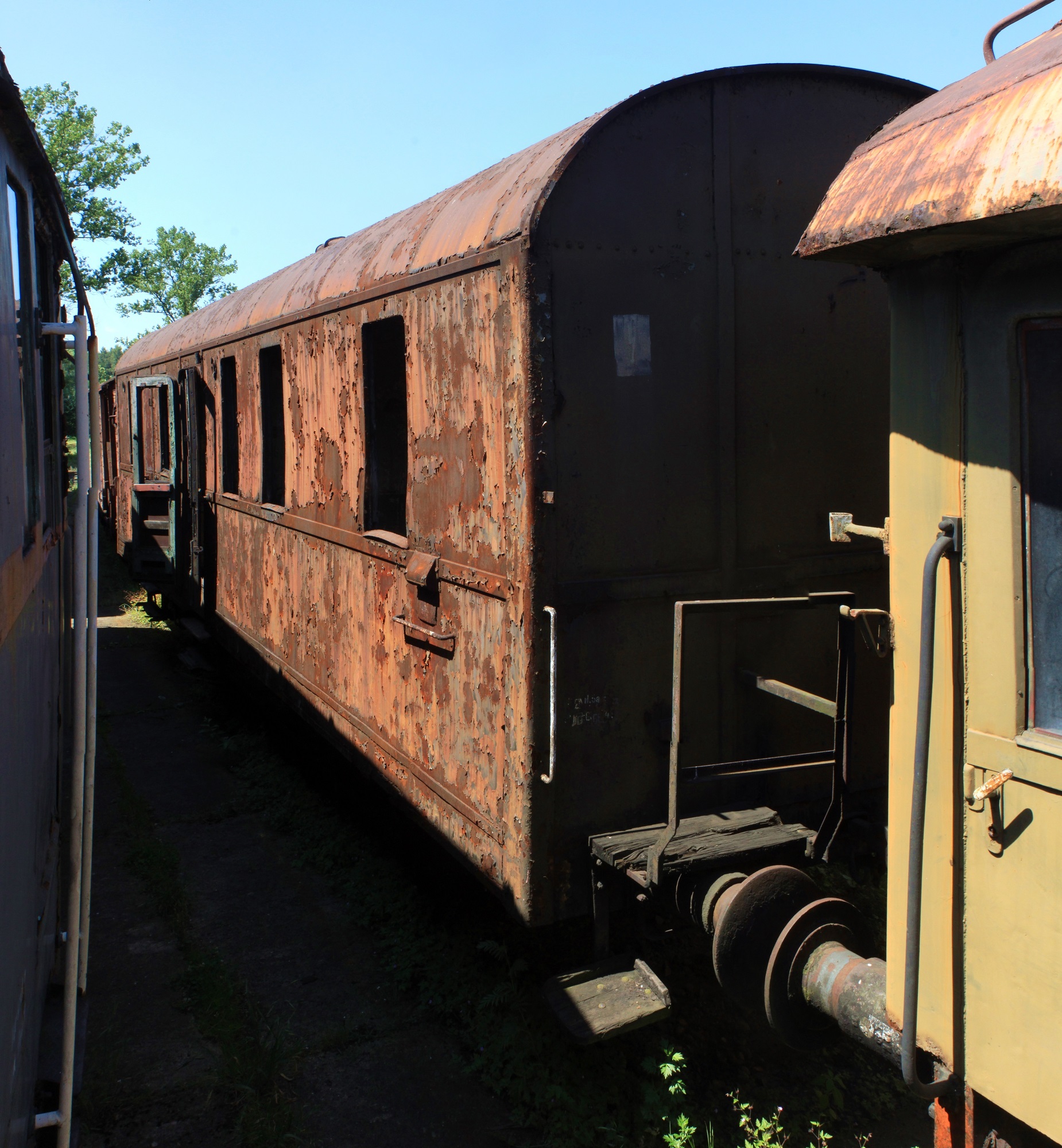 Ambulans pocztowy 505 100-2 Pm, z przydziałem do stacji Przeworsk, czekający na zapleczu warsztatów na lepsze czasy. (Chabówka, 2013-07-09) |