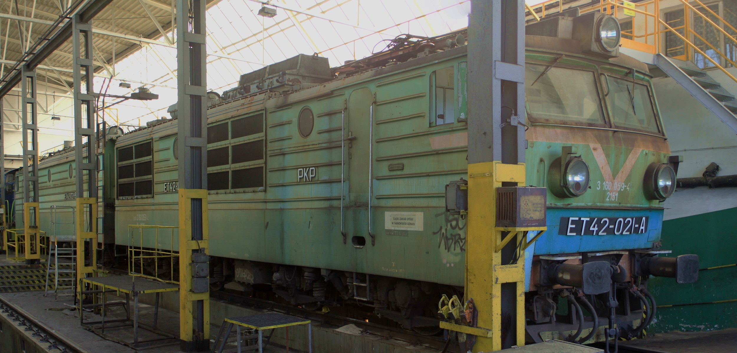 ET42-021 na terenie lokomotywowni PKP Cargo. (Tarnowskie Góry, 2013-07-02) |