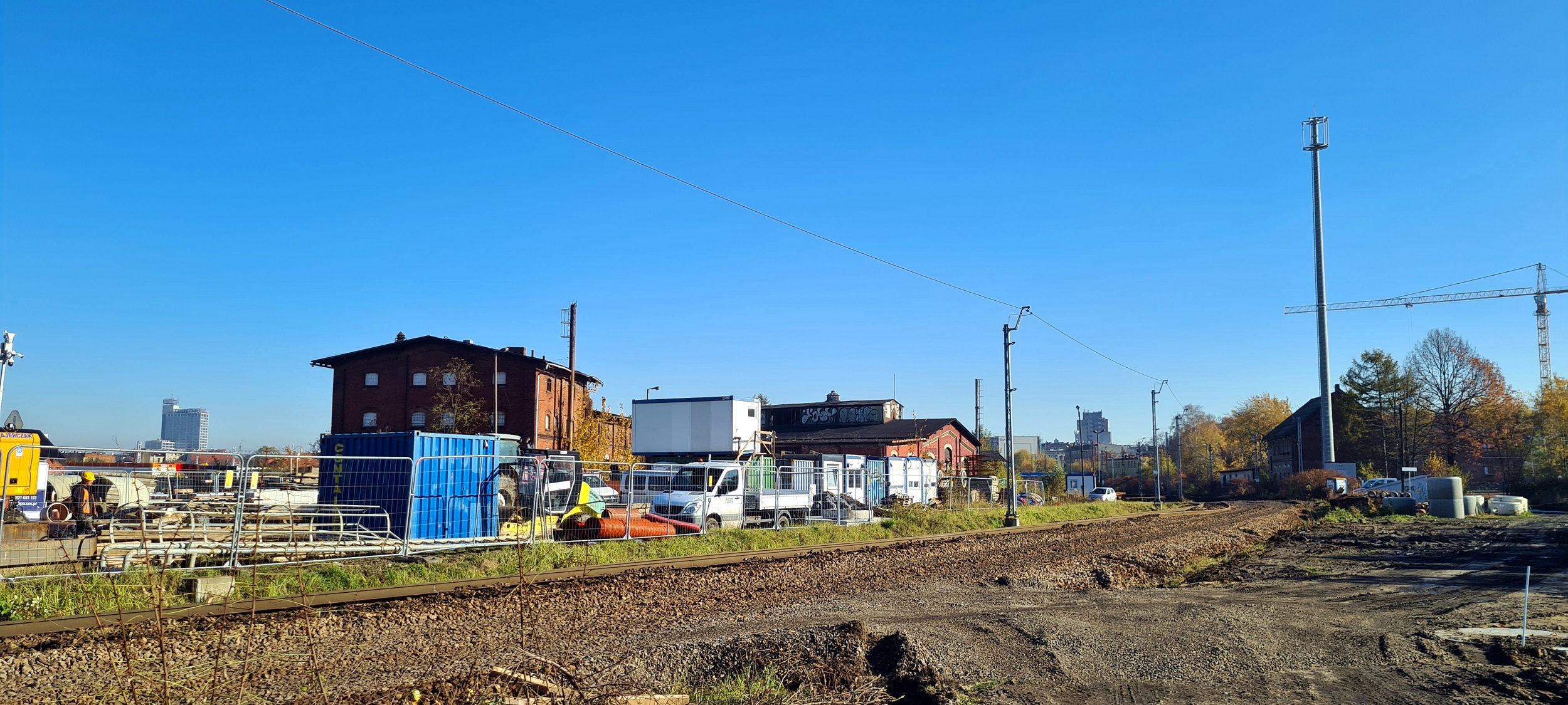 Zaplecze budowy po zachodniej stronie starej parowozowni. (Katowice, 2025-11-06) |