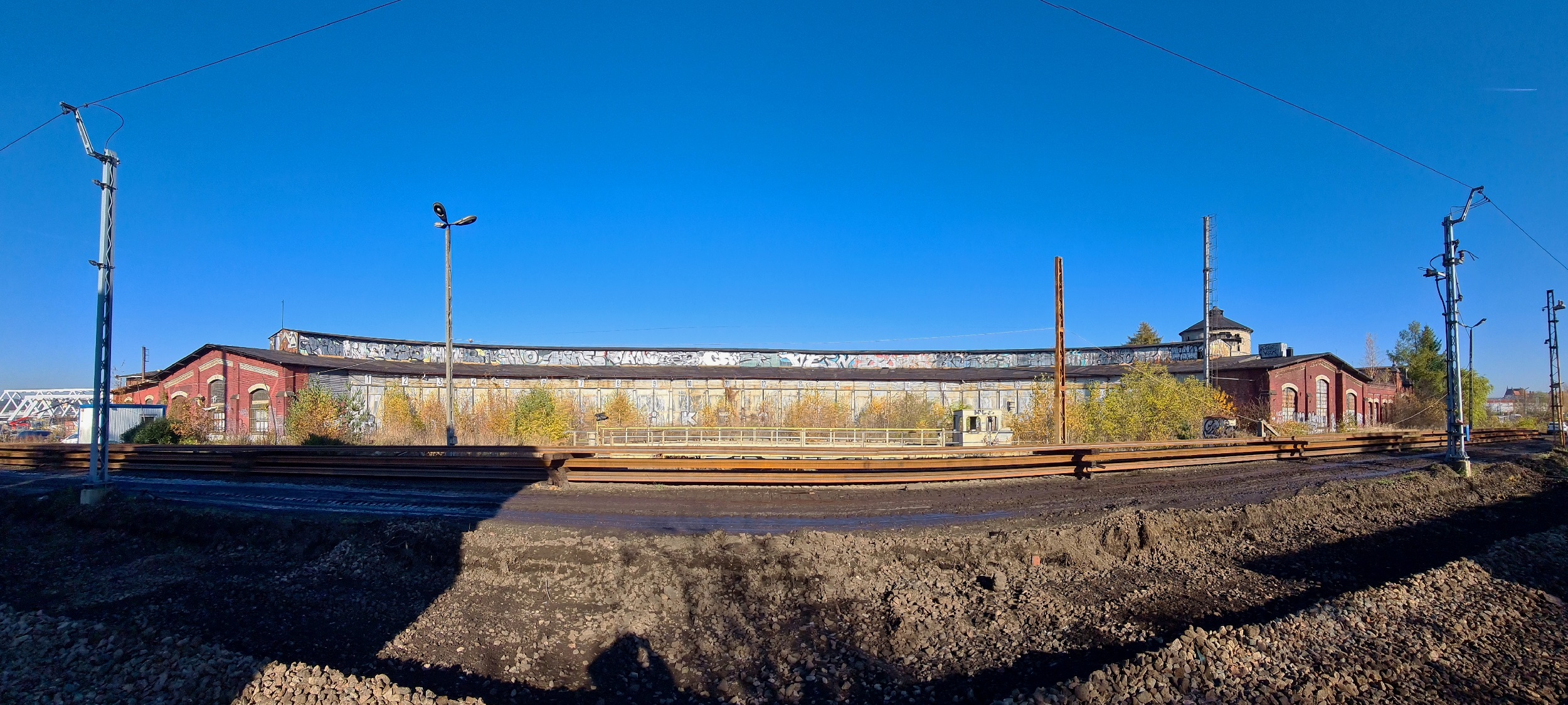 Stara parowozownia, widok od strony zachodniej hali wachlarzowej. (Katowice, 2025-11-06) |