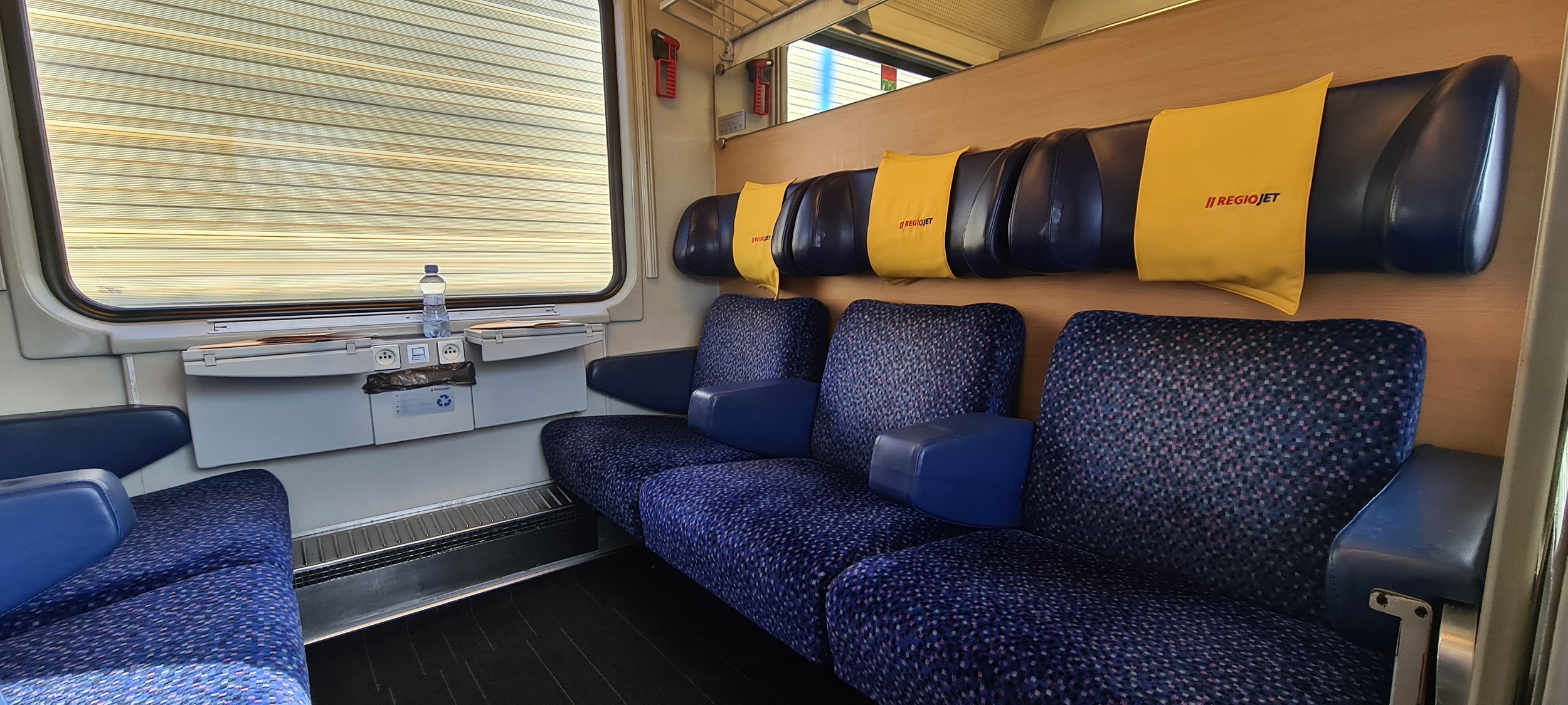 Wagon 61 81 30-90 039-1 AB039 w składzie pociągu RJ3104/5 „REGIOJET”, z Krakowa Głównego do Warszawy Wschodniej, przez Zawiercie.