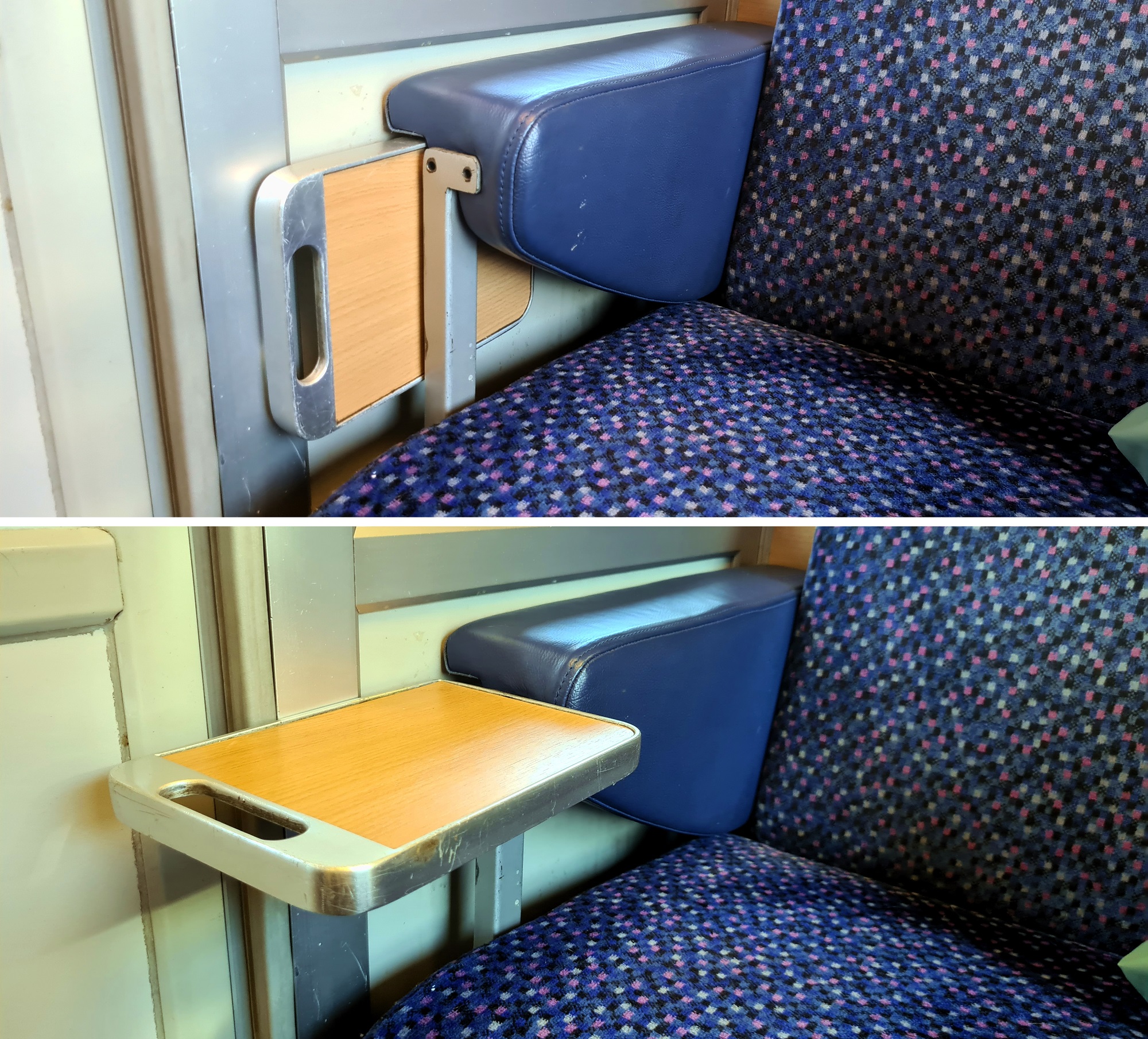Na zdjęciu wnętrze dawnego przedziału 2 klasy, mechanizm rozkładania stolików przydrzwiowych. (2025-11-06) |