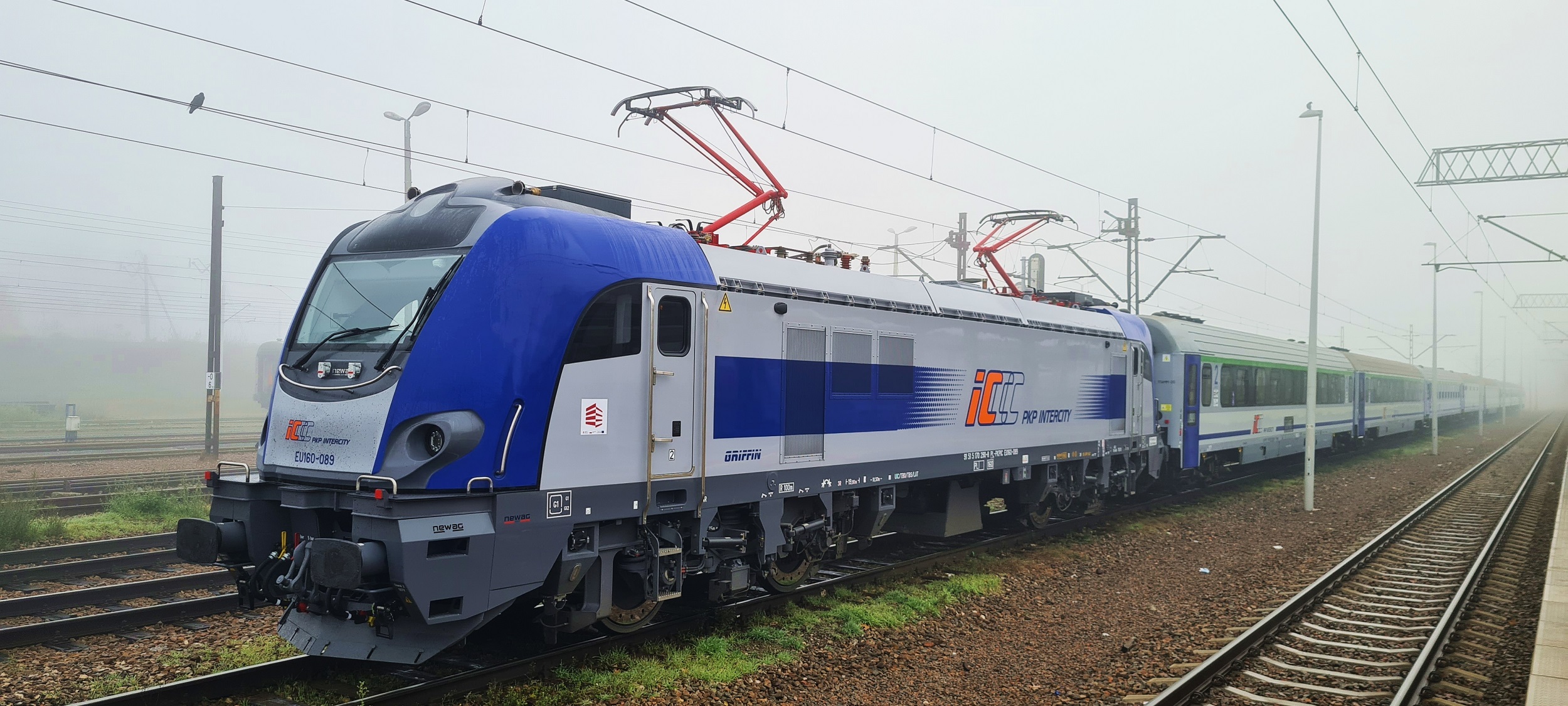 EU160-089 w składzie pociągu slużbowego, jako podsył na TLK38110 „Kossak”, relacji Kraków Główny - Kołobrzeg. (Kraków Płaszów, 2025-11-06) |