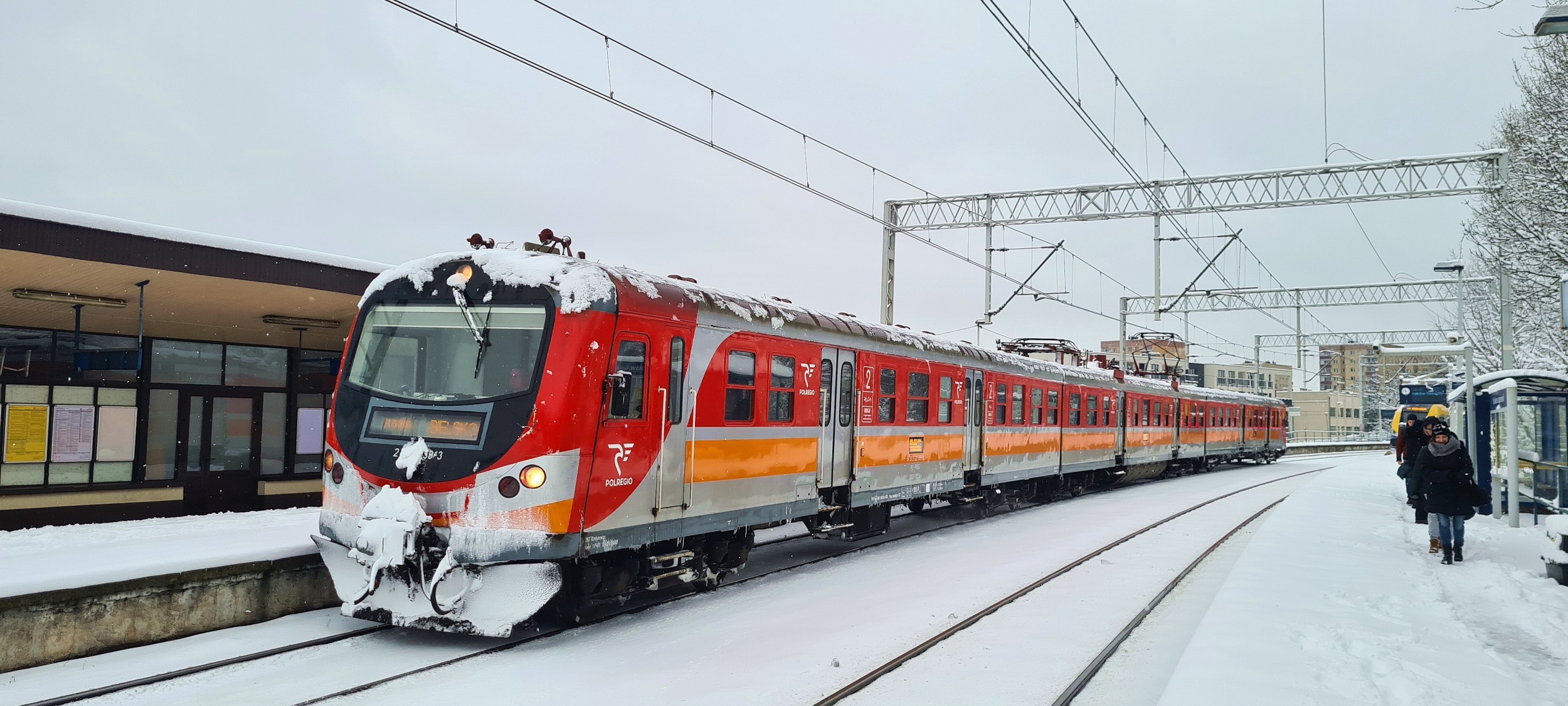 EN57-20055 jako regio R34609 „Bolek i Lolek”, relacji Kraków Główny – Bielsko-Biała Główna. (Kraków Łagiewniki, 2025-11-23) |
