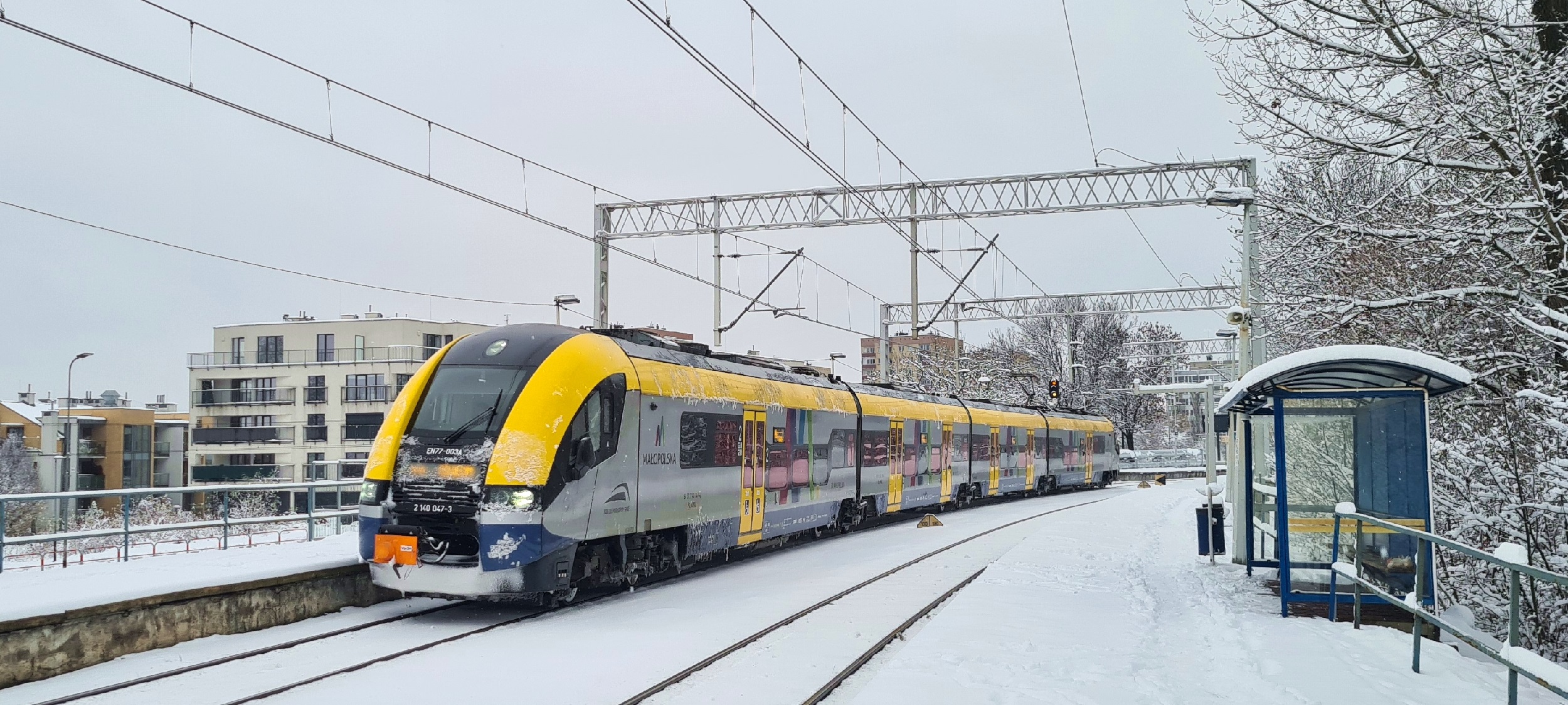 2025, 2025-11-23, Listopad, Małopolska, małopolskie, Kraków, KrakówŁagiewniki, KMŁ, KolejeMałopolskie, SKA, SKA2, EMU, EZT, Jednostka, Acatus2, AcatusII, EN77, EN77-003, 32WE, Małopolski, PESA, KML23855 |