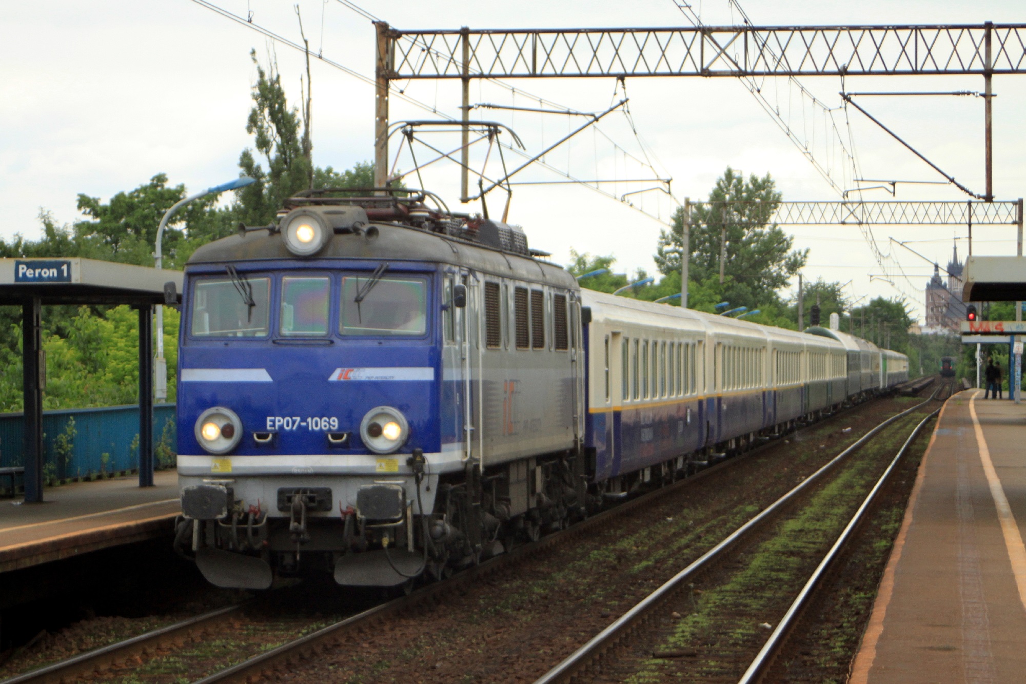 EP07-1069 na czele składu pociągu specjalnego do Budapesztu. (Kraków Zabłocie, 2013-06-27) |