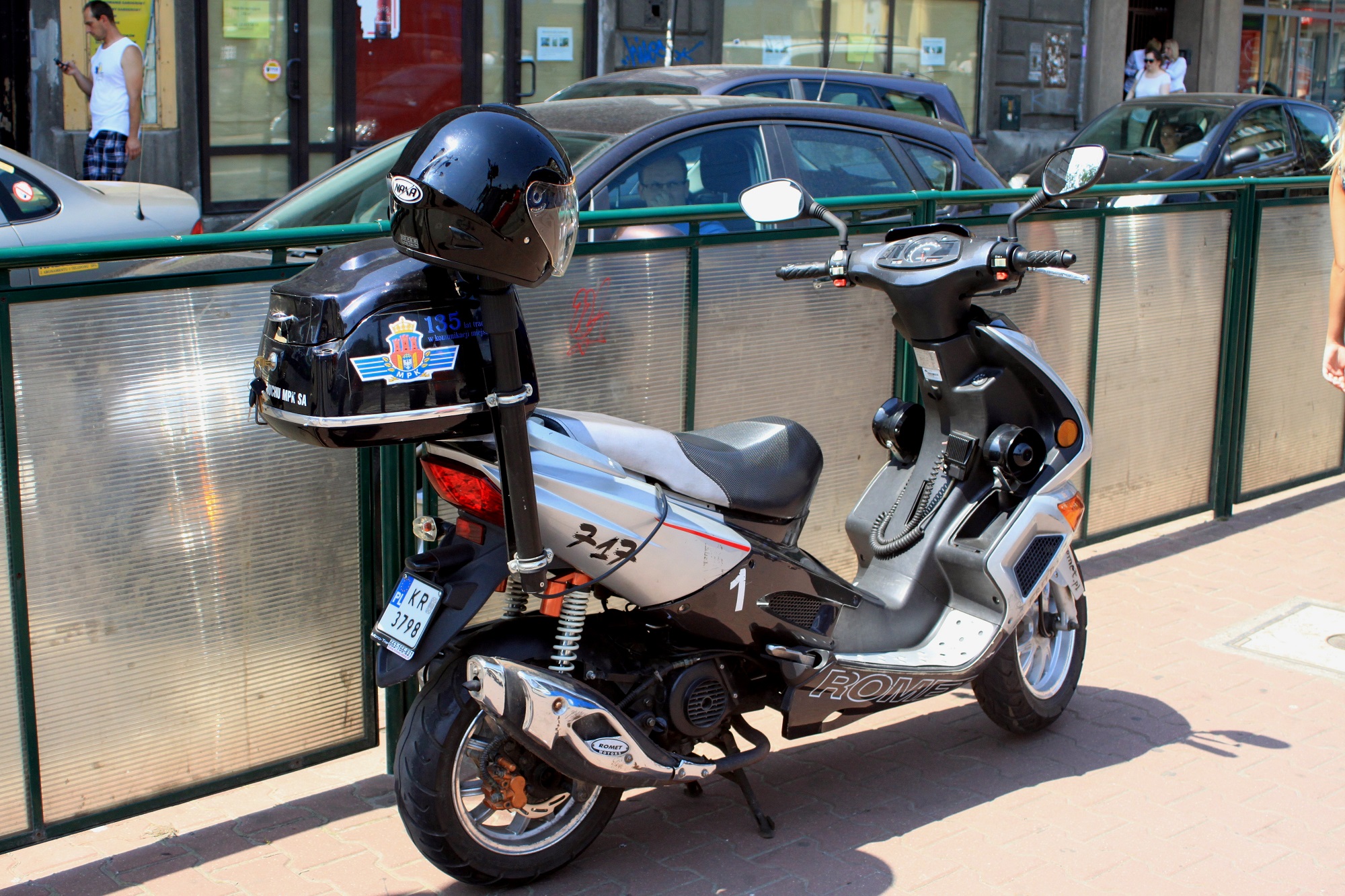 Jednoślad inspektora ruchu MPK Kraków, zaparkowany na peronie przystanku Starowiślna. (Kraków, 2013-06-20) |