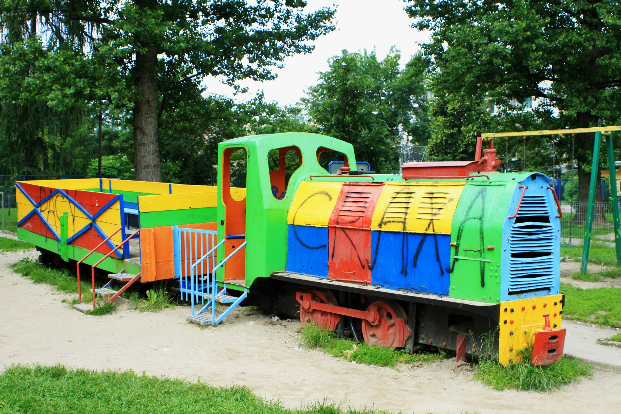 Postsolvayowska lokomotywka na placu zabaw przy Szwedzkiej. (Kraków, Os. Podwawelskie, 2013-06-17) |