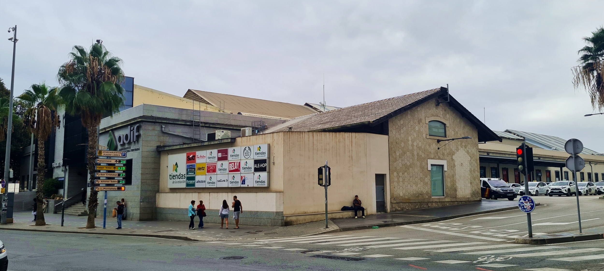 Dworzec wrac z widoczną w głębi dawną halą peronową, pełniącą obecnie funkcje holu głównego. (Alicante, 2025-10-06) |