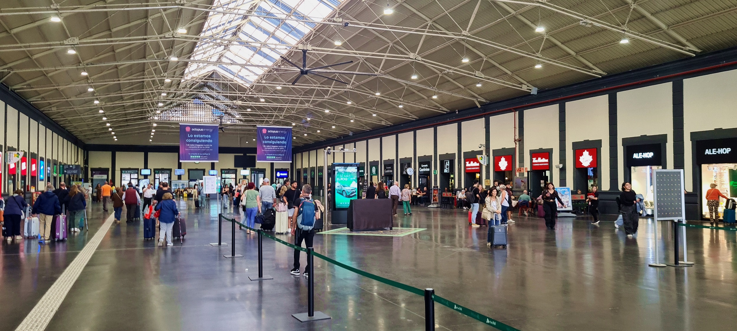 Dawna hala peronowa, obecnie główny hol dworca. Widok w stronę wyjścia do miasta. (Alicante, 2025-10-06) |