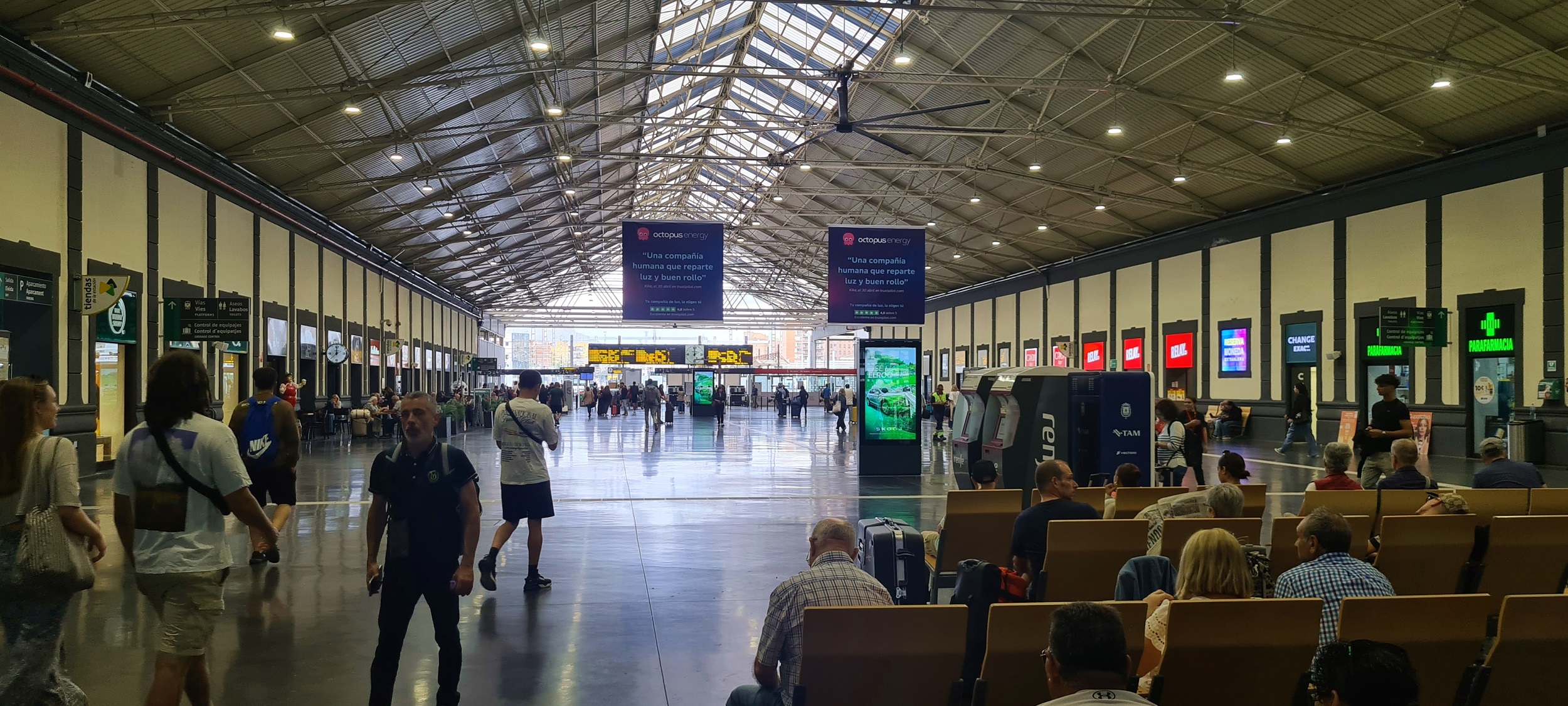 Dawna hala peronowa, obecnie główny hol dworca. Widok w stronę wyjścia na perony. (Alicante, 2025-10-06) |
