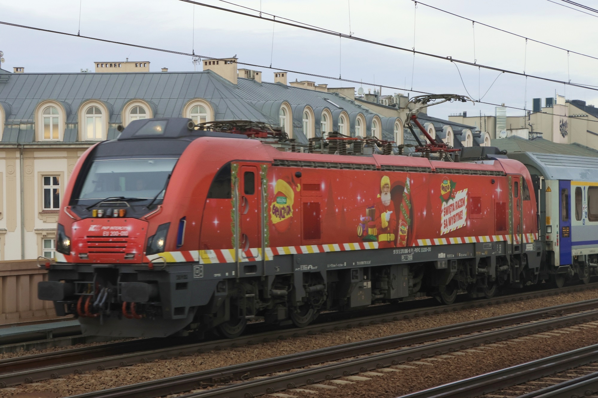 EU200-010 na czele składu pociągu EIC1350 „Tatry”, relacji Warszawa Wschodnia - Zakopane. (Kraków Grzegórzki, 2025-12-08) |