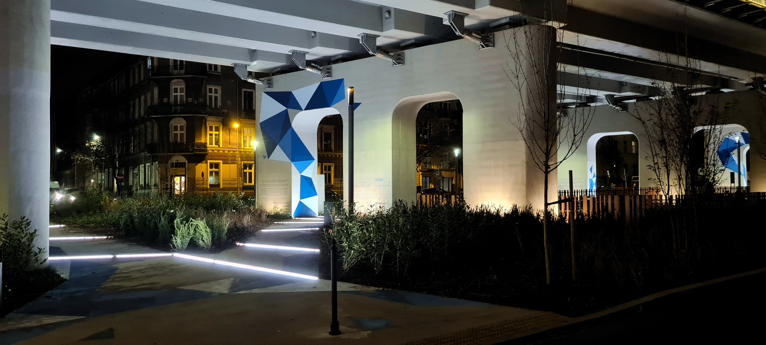 Park Kolejowy powstały pod estakadą średnicową, pomiędzy ulicami Grzegórzecką i Kopernika. (Kraków, 2025-12-09) |