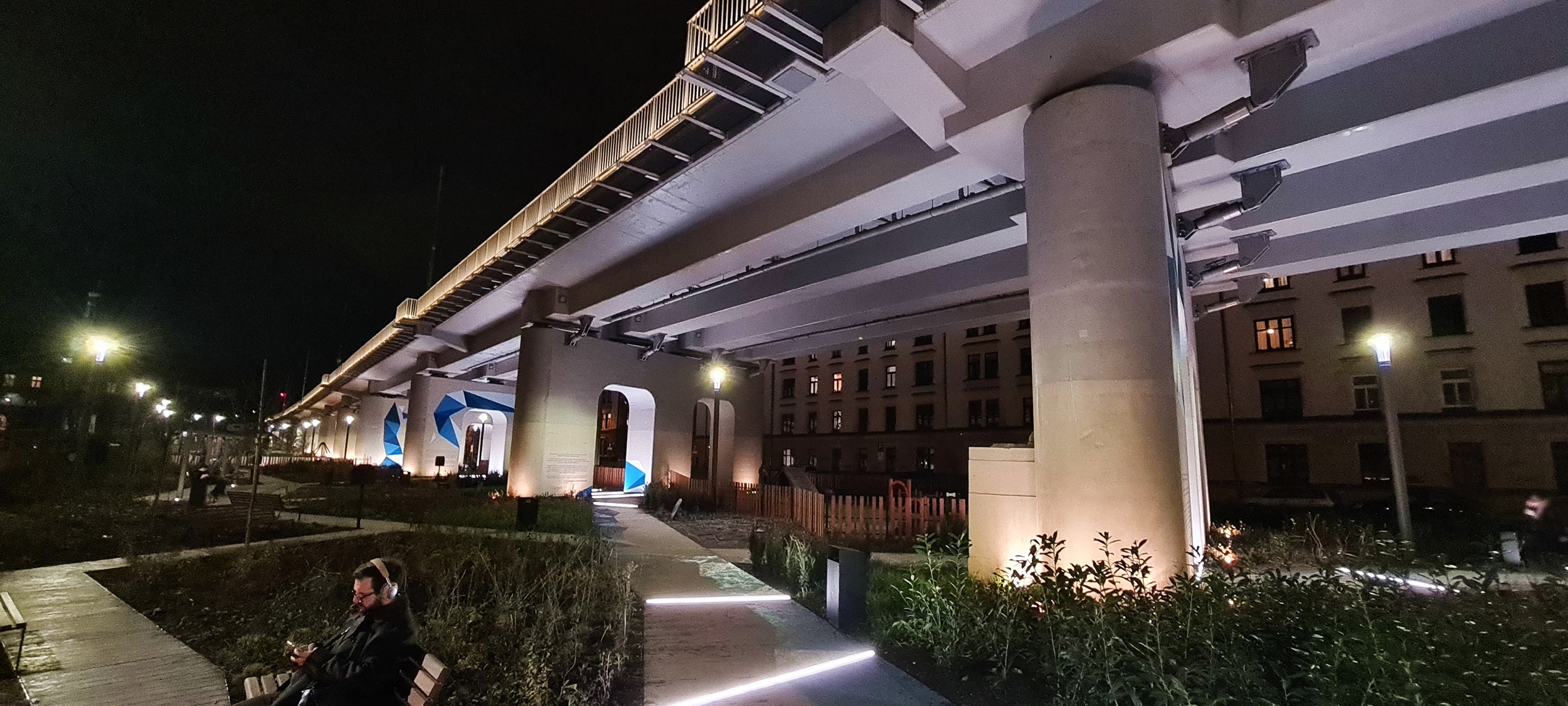 Park Kolejowy powstały pod estakadą średnicową, pomiędzy ulicami Grzegórzecką i Kopernika. (Kraków, 2025-12-09) |