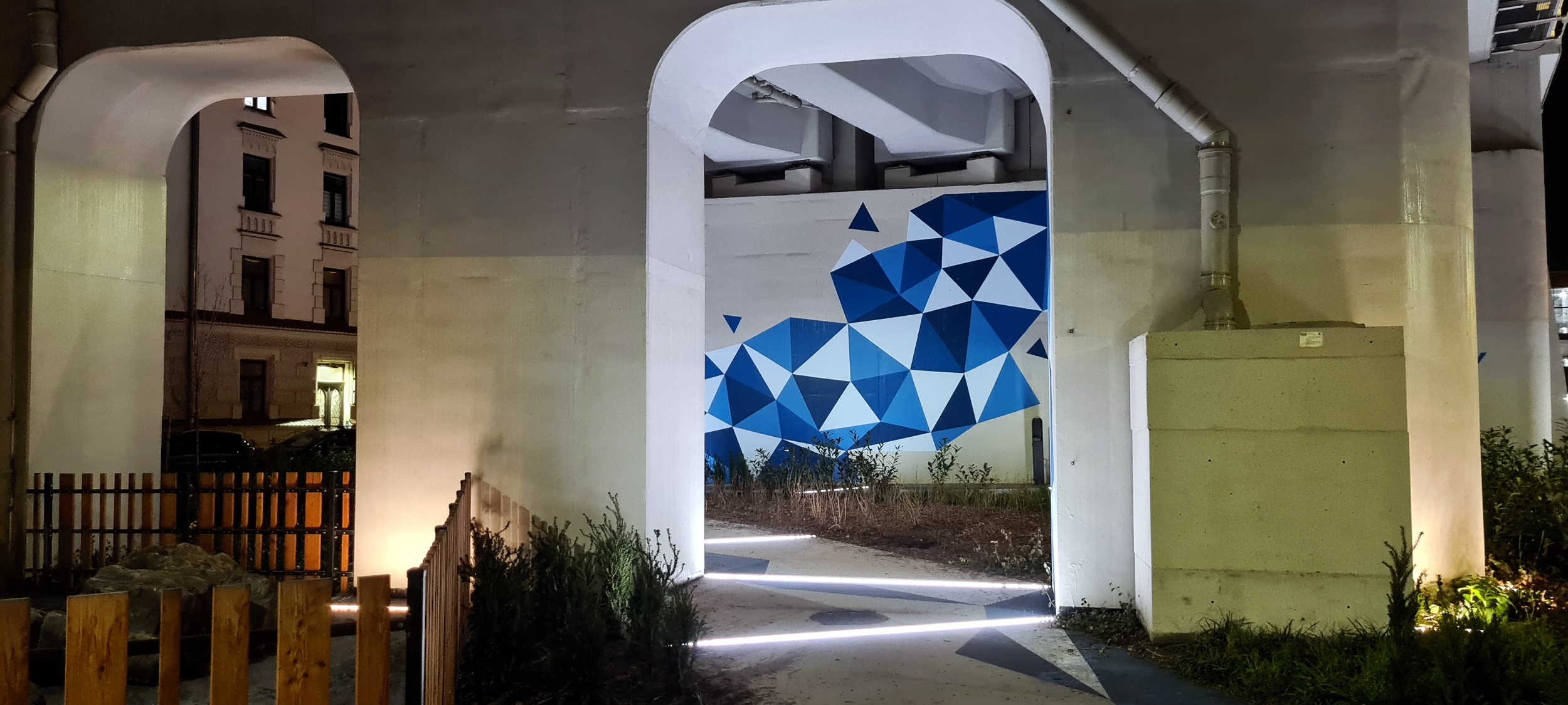 Park Kolejowy powstały pod estakadą średnicową, pomiędzy ulicami Grzegórzecką i Kopernika. (Kraków, 2025-12-09) |