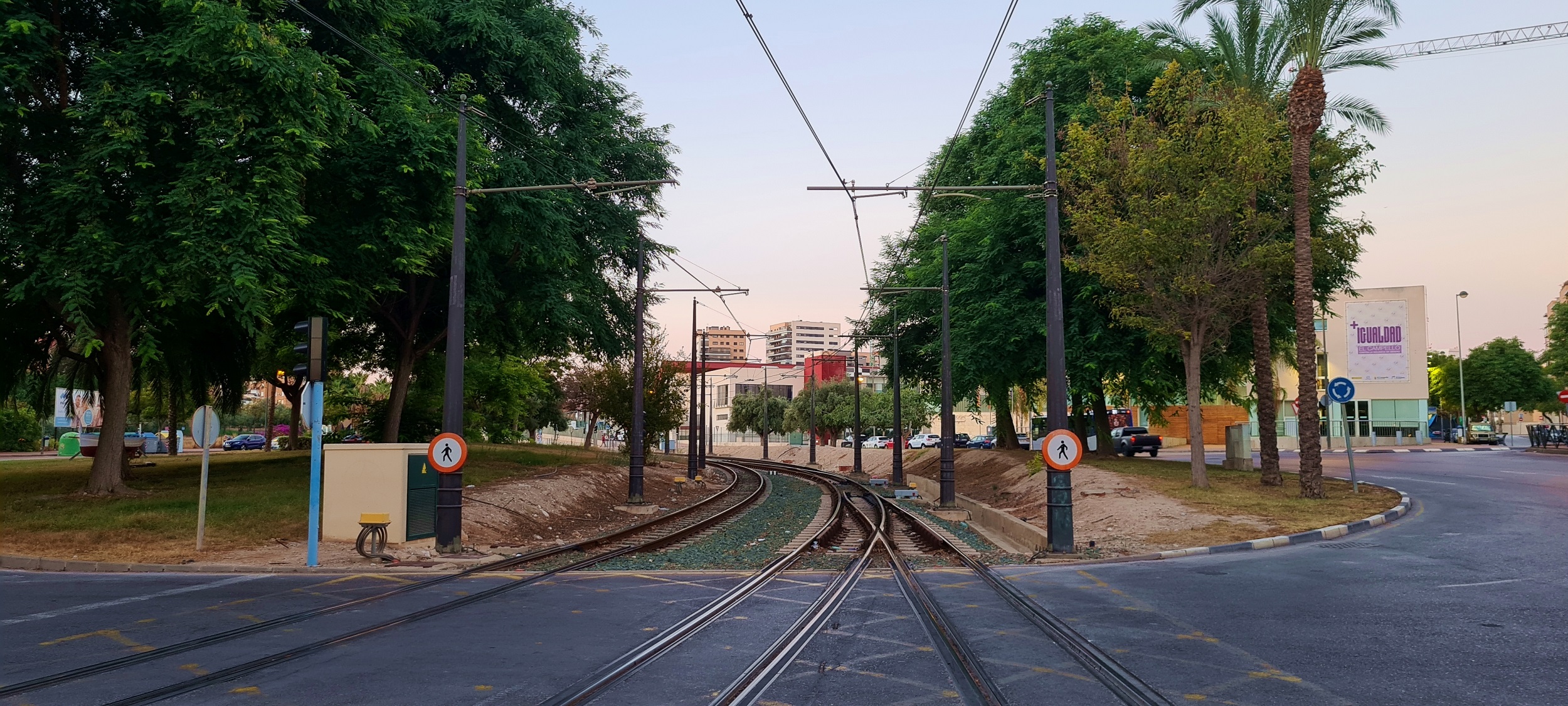Linia kolei wąskotorowej (Trenet de la Marina ), łączącej Alicante z miasteczkiem Dénia, została przekuta na rozstaw 1435 mm, w części zelektryfikowana i w śródmieściu Alicante wprowadzona pod ziemię. (El Campello, 2025-10-05) |