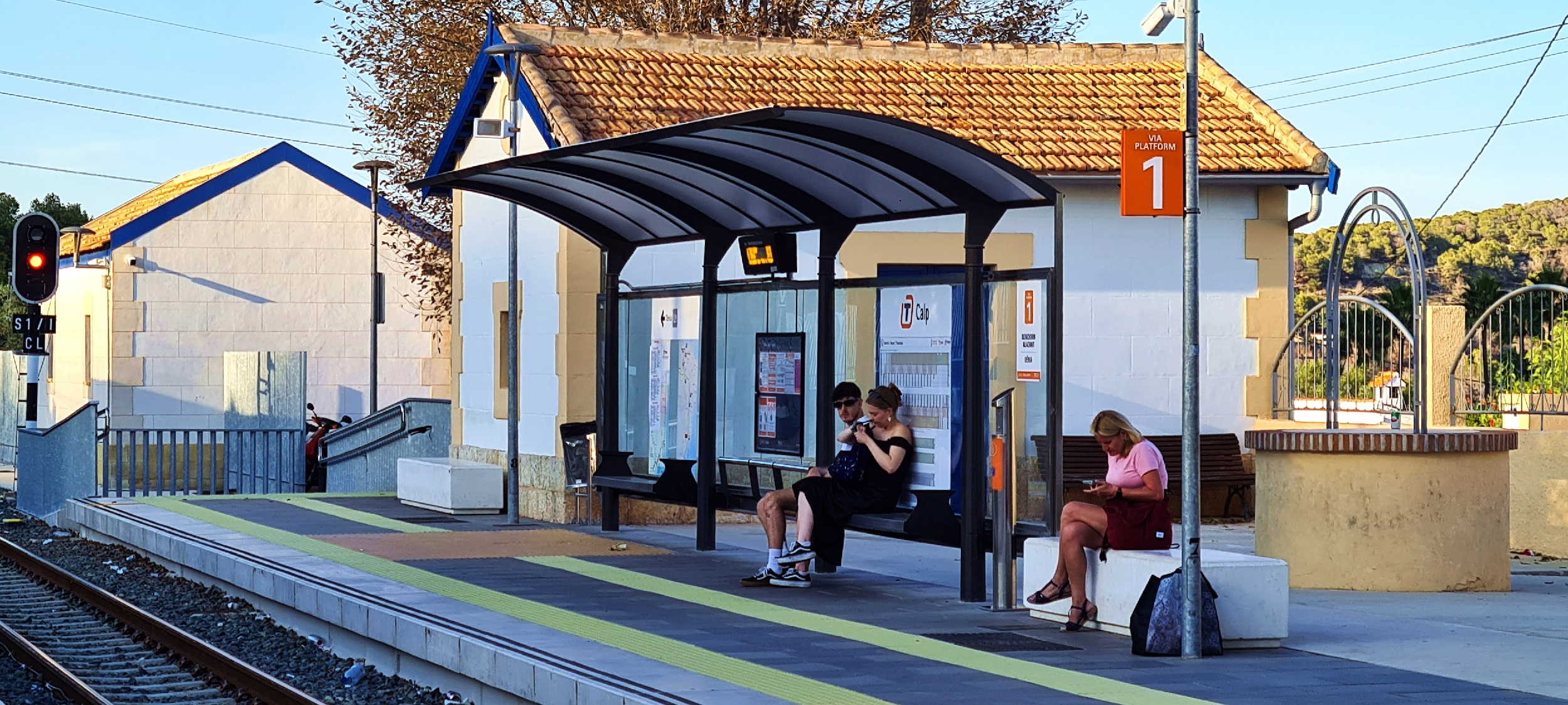 Linia kolei wąskotorowej (Trenet de la Marina ), łączącej Alicante z miasteczkiem Dénia, została przekuta na rozstaw 1435 mm, w części zelektryfikowana i w śródmieściu Alicante wprowadzona pod ziemię. (Calp, 2025-10-01) |