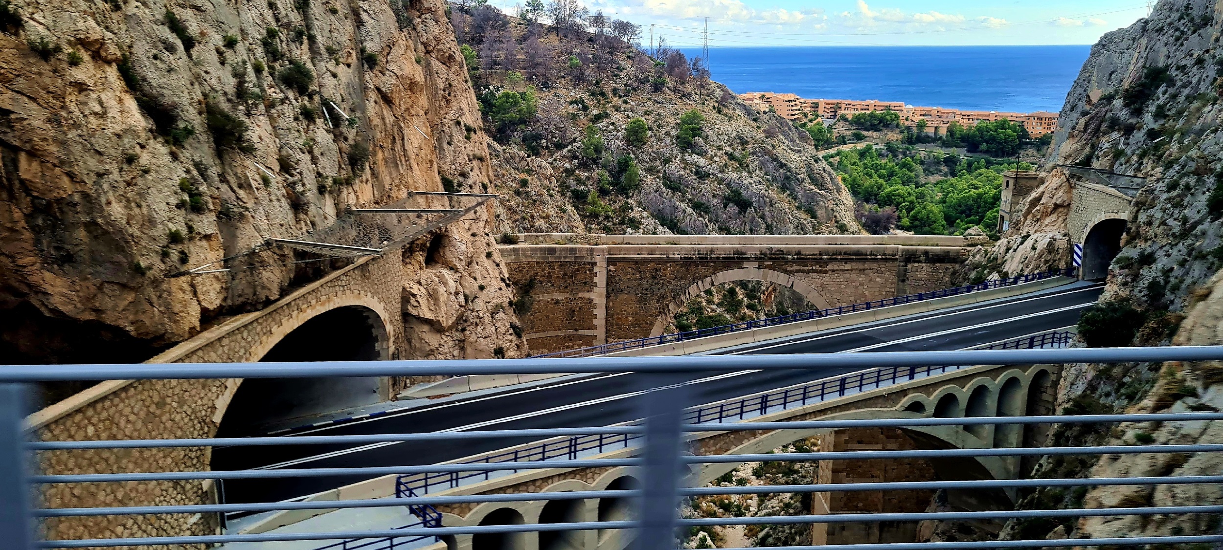 Trzy mosty nad przepaścią Kanionu Mascarat, na trasie pomiędzy Alteą a Calp: