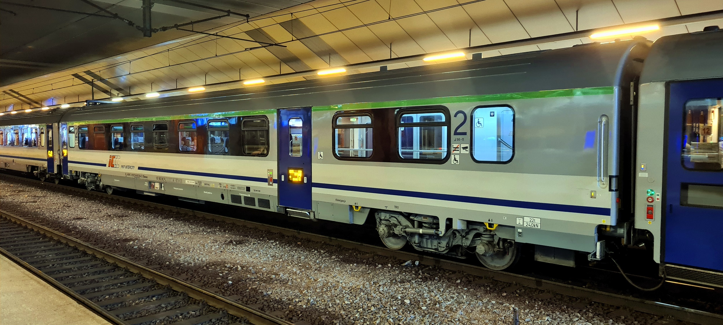 Wagon 157Aa 61 51 29-90 039-0 B9bmnouz w składzie pociągu EIC1350 „Tatry”, relacji Warszawa Wschodnia – Zakopane. (Kraków Główny, 2025-12-29) |