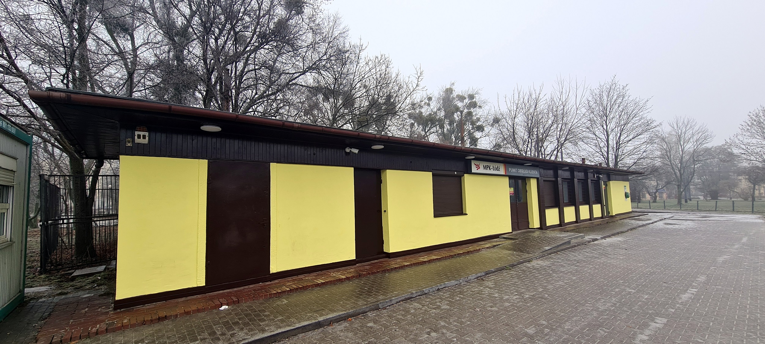 Budynek dawnego dworca do obsługi podmiejskiej linii tramwajowej do Pabianic. Obecnie mieści się w nim Punk Obsługi Klienta MPK. (Łódź, 2025-12-28) |