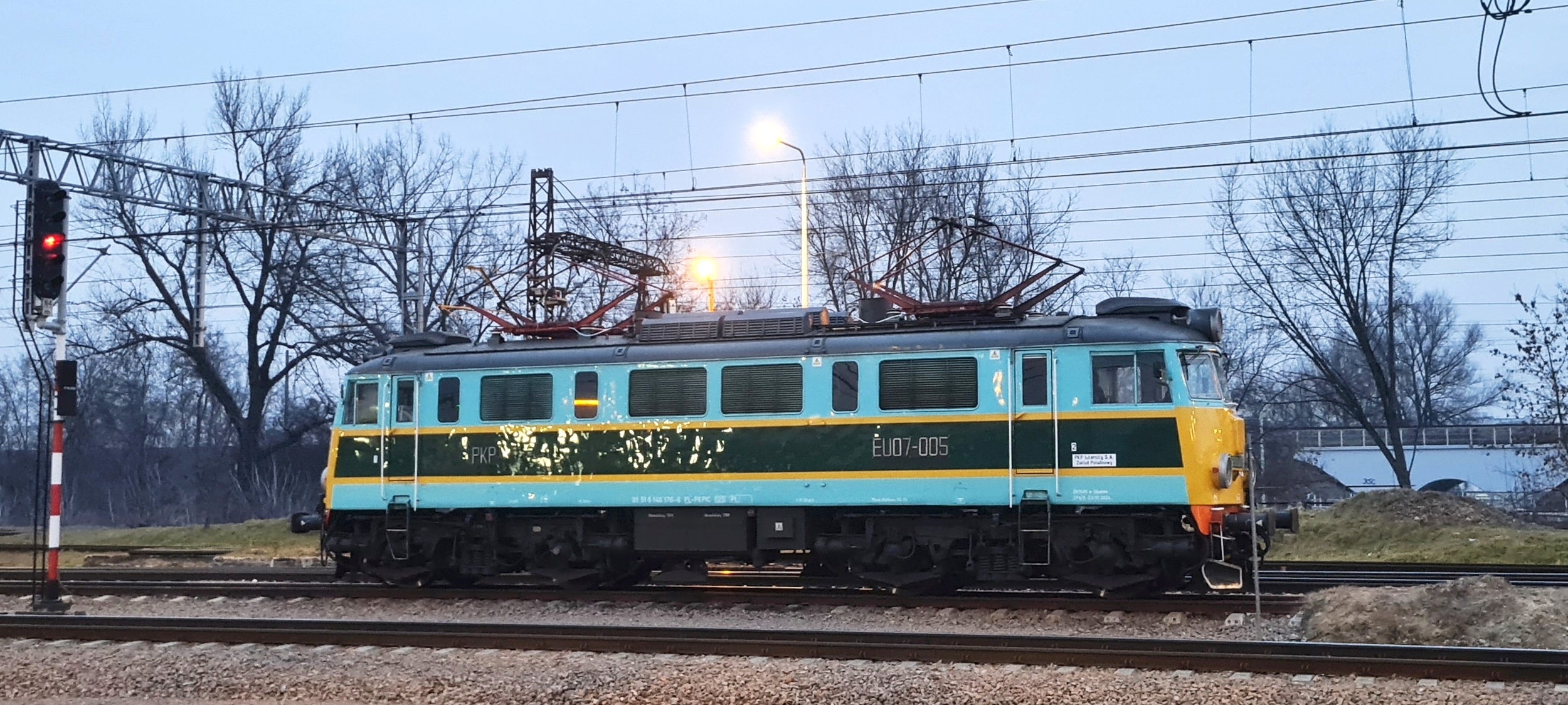 EU07-005 czeka na żeberku na zatrudnienie. (Kraków Płaszów, 2026-01-06) |