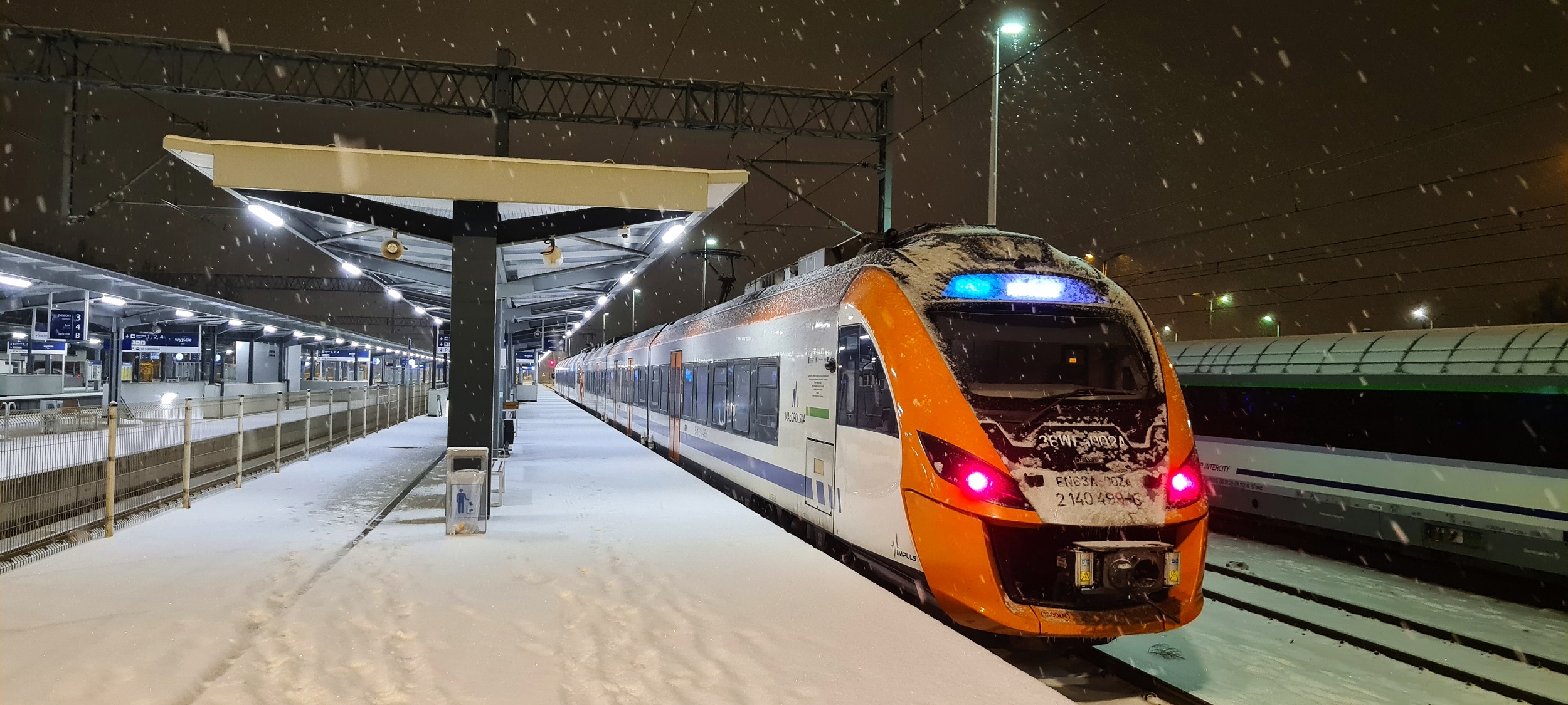 Skład EN63A-017 + EN63A-002 jako pociąg R34302/3 do Katowic. (Kraków Płaszów, 2026-01-08) |