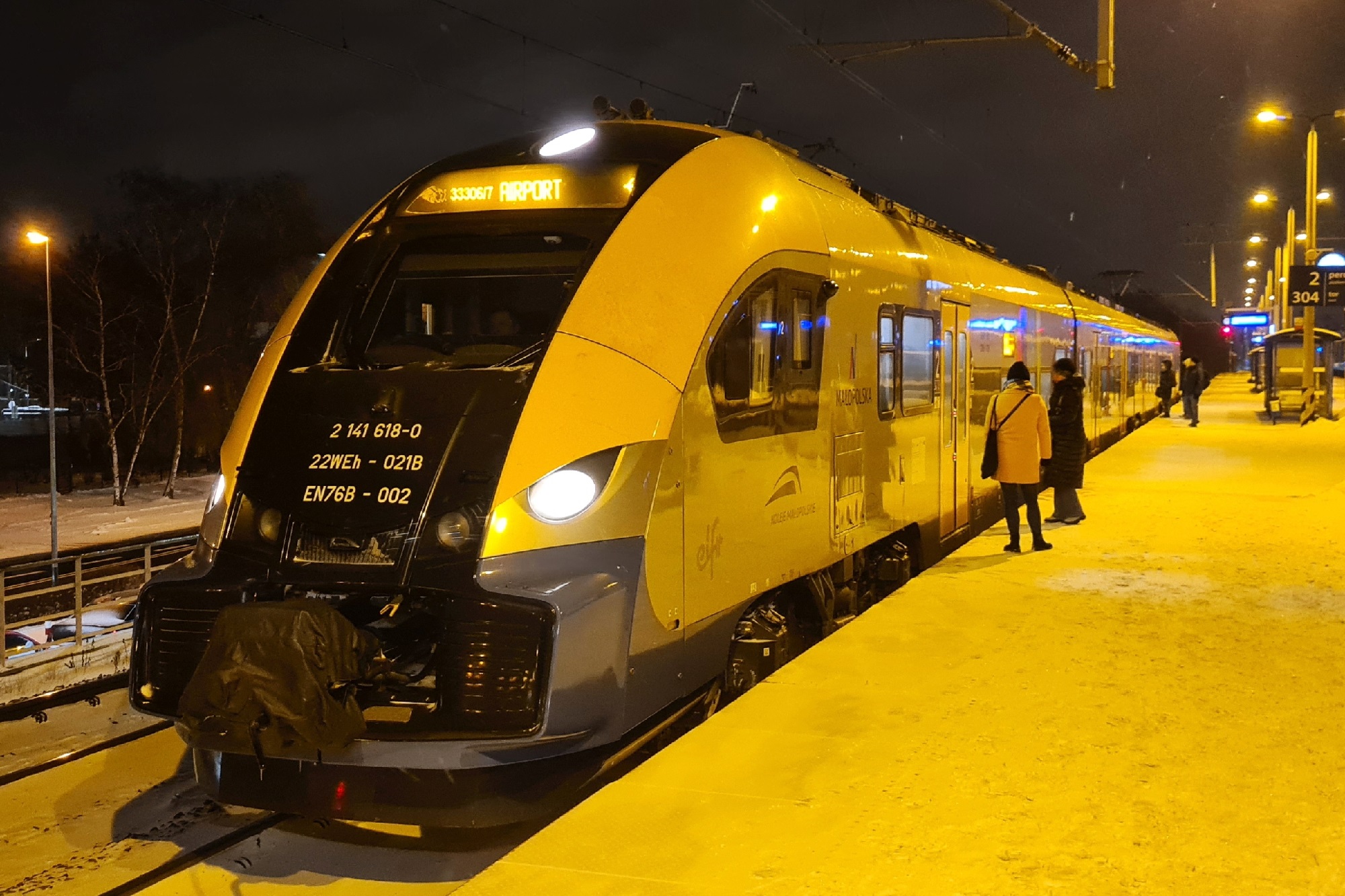 EN76B-002 jako pocią KML33306 SKA1, relacji Wieliczka Rynek-Kopalnia – Kraków Lotnisko. (Kraków Łobzów, 2026-01-12) |