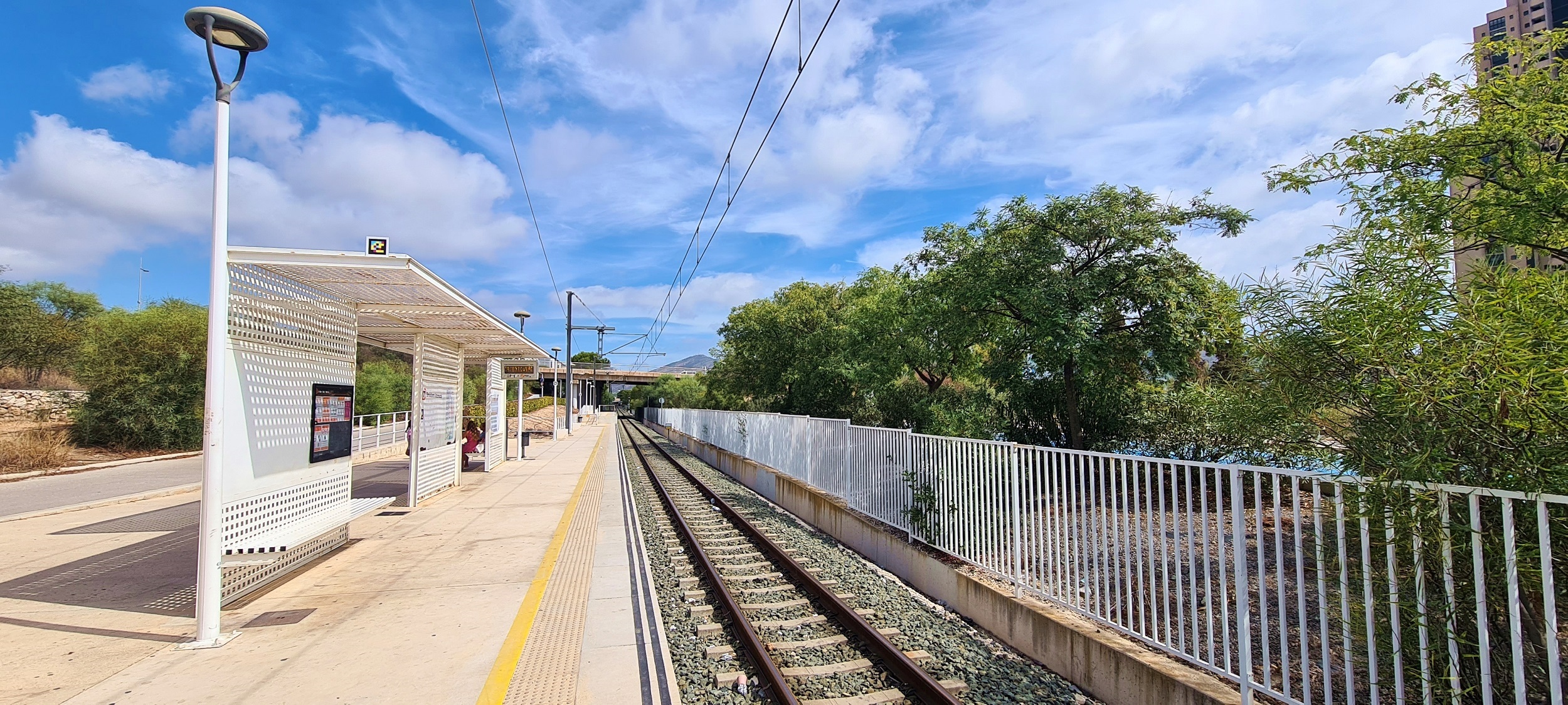 Przystanek TRAM Metropolitano de Alicante, spojrzenie w stronę przystanku Camà Coves. (Benidorm Intermodal, 2025-09-27) |