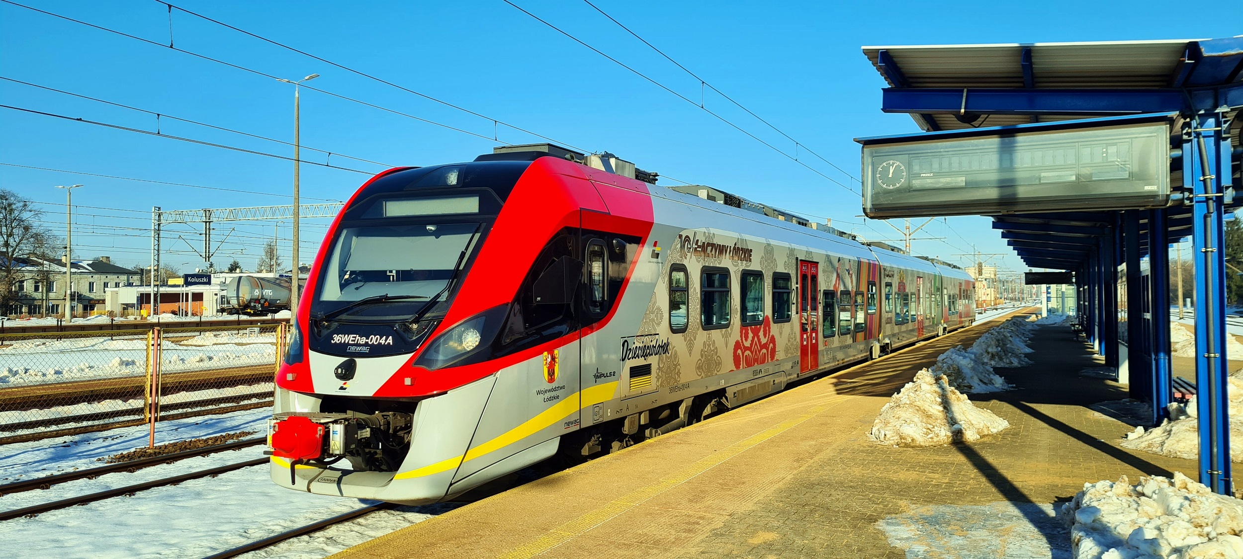 2026, 2026-01-18, Styczeń, Styczeń2026, Łódzkie, Koluszki, ŁKA, ŁódzkaKolejAglomeracyjna, łódzki, HZT, jednostka, Impuls2, Newag, 36WEha, hybryda, 36WEha-004, Okleina, Dziesięciolatek, L21364 |