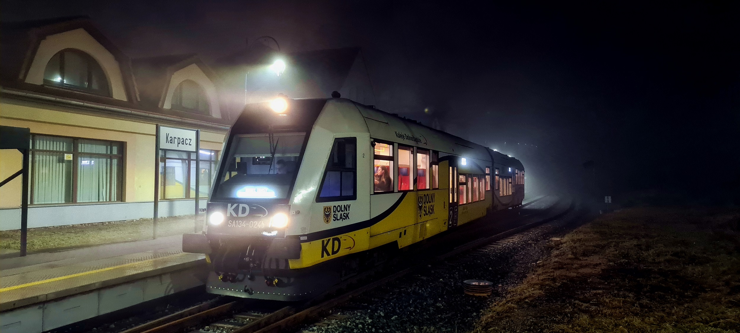2026, 2026-02-07, Luty, Luty2026, Dolnośląskie, DolnyŚląsk, Karpacz, KD, KolejeDolnośląskie, Dolnośląski, SA134, SA134-024, PESA, DMU, SZT, Mińsk2, ZNTK, ZNTKMińskMazowiecki, 218Md, osobowy, KD66786 |