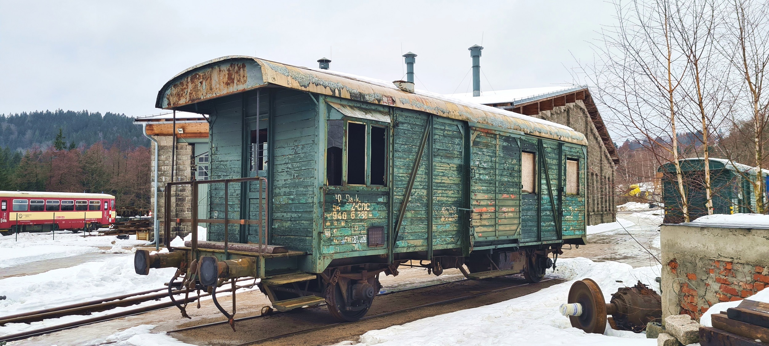 Brankard Da-k, stojący przy obrotnicy. (Kořenov, 2026-02-05) |
