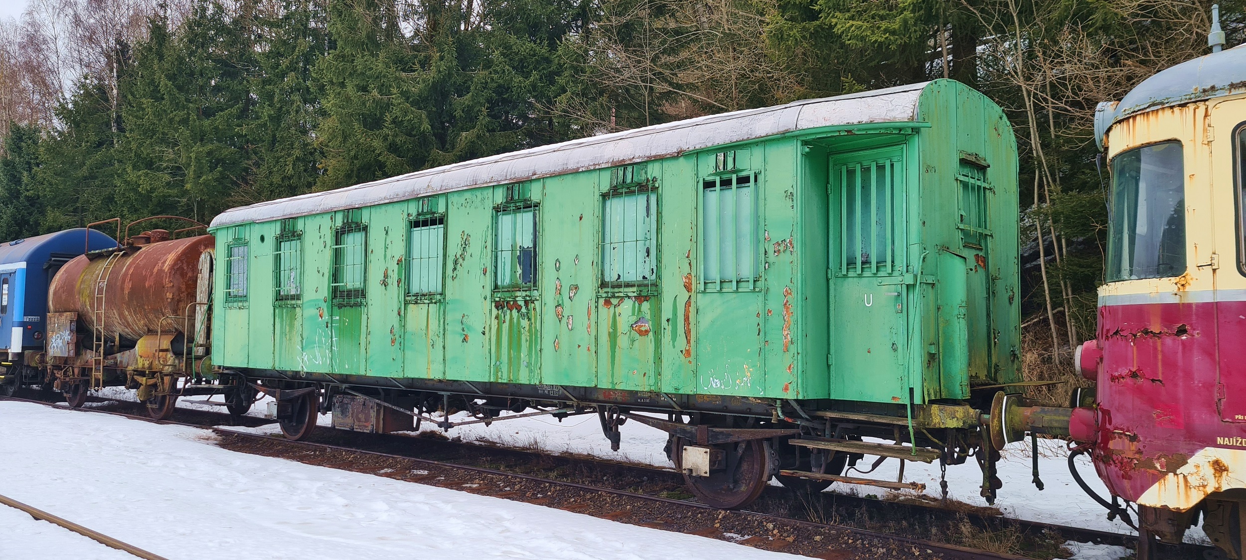 Wagon gospodarczy, wykonany na bazie wagonu pasażerkiego, nieznanej mi proweniencji. (Kořenov, 2026-02-05) |
