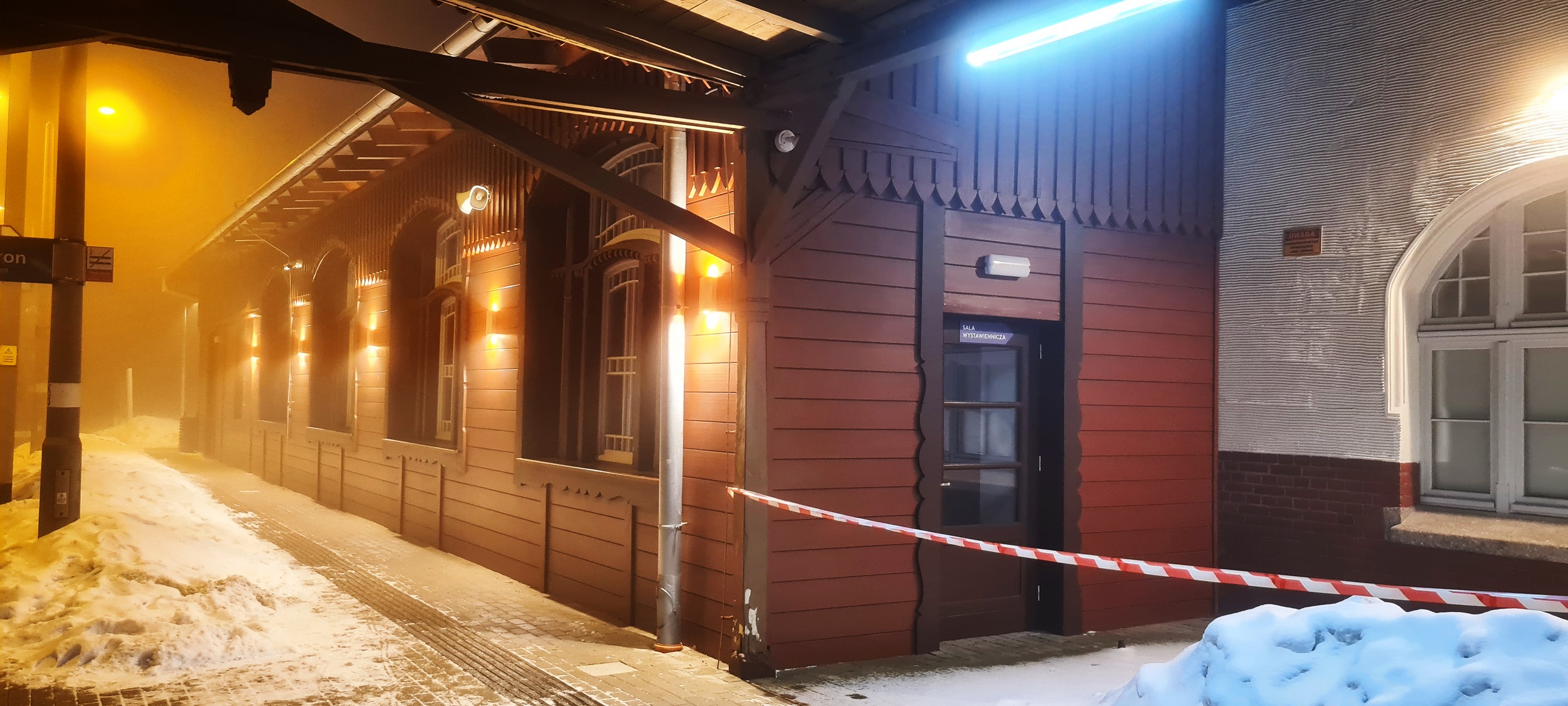 4 Peron, czyli mieszczące się we wschodnim skrzydle dworca lokalne, centrum wystawienniczo/kinowo/konferencyjne, powstałe pod patronatem Miejskiego Ośrodka Kultury, Sportu i Aktywności Lokalnej. Widok z peronu 1. (Szklarska Poręba Górna, 2026-02-04) |