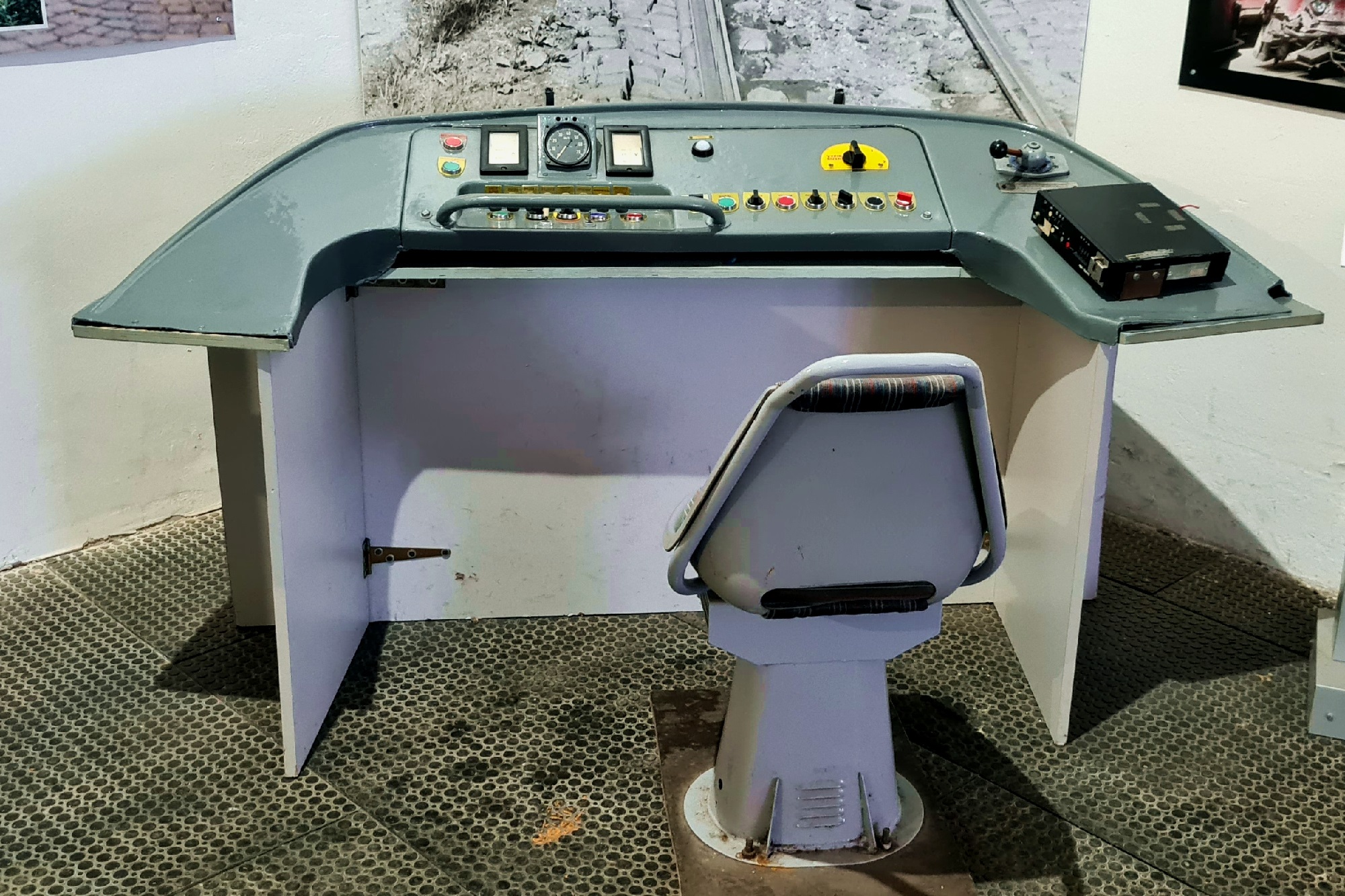 Pulpit prowadzÄ…cego pochodzÄ…cy z wagonu Tatra T3, ekspozycja w libereckim Muzeum Techniki. (Liberec, 2026-02-04) |