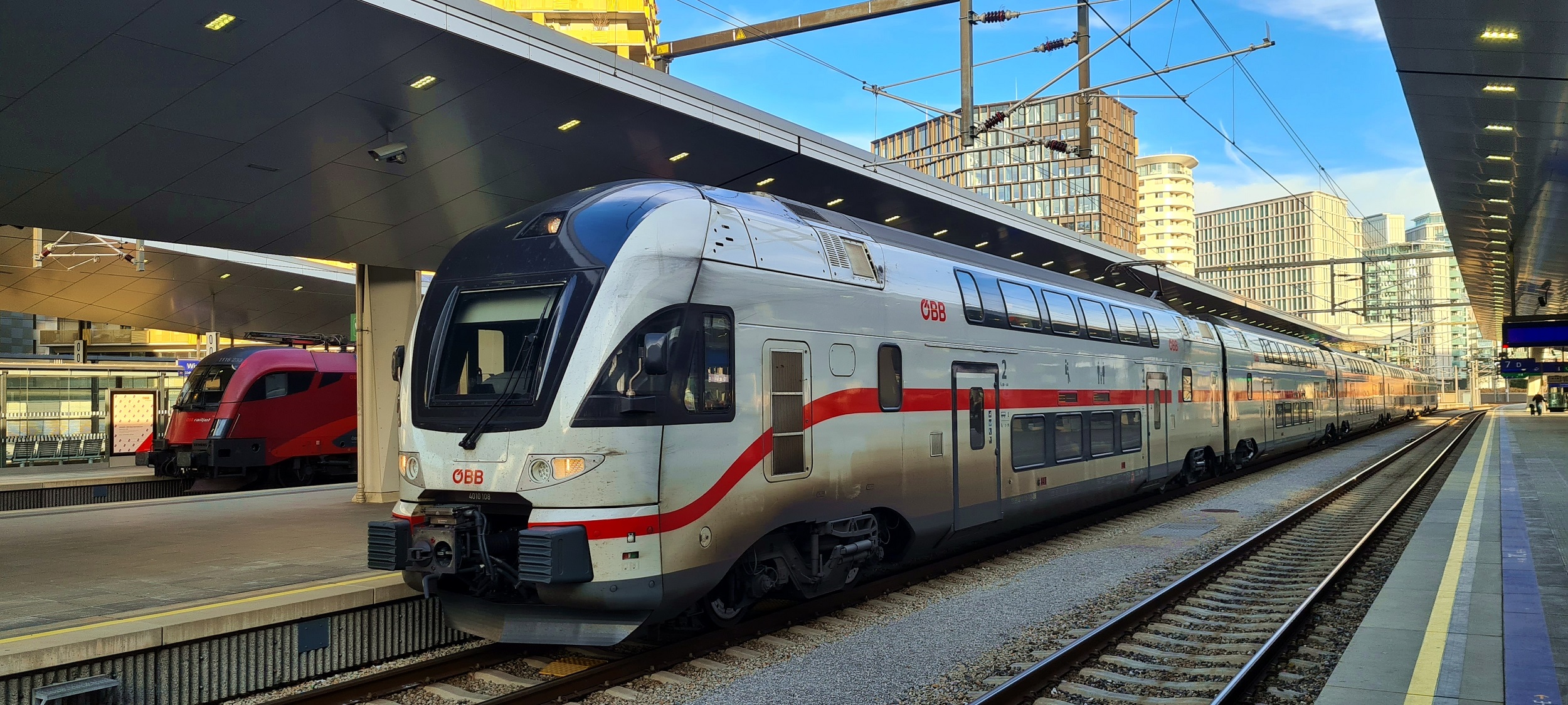Jednostka 4010 108 gotowa do odjazdu, jako pociÄ…g IC740, do stacji Salzburg Hbf. (Wien Hauptbahnhof, 2026-02-26) |