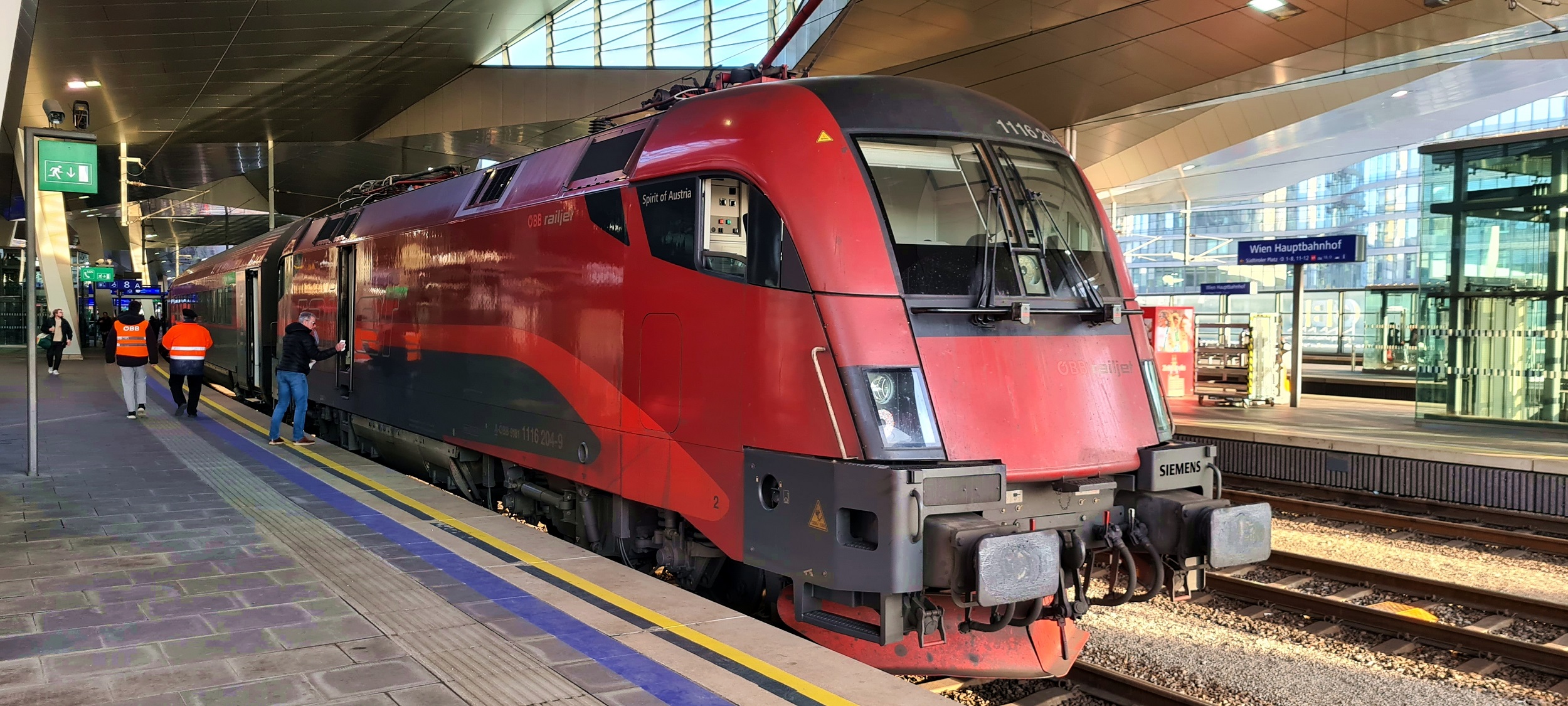 2026, 2026-02-26, Luty, Luty2026, Austria, Österreich, Wiedeń, Wien, WienHauptbahnhof, WienHbf, Railjet, Push-pull, p&p, Siemens, Simmering, ViaggioComfort, 470, Taurus, Eurosprinter, ES64U2, 1116, 1116204, ÖBB, ÖsterreichischeBundesbahnen, ÖBBRailjet |