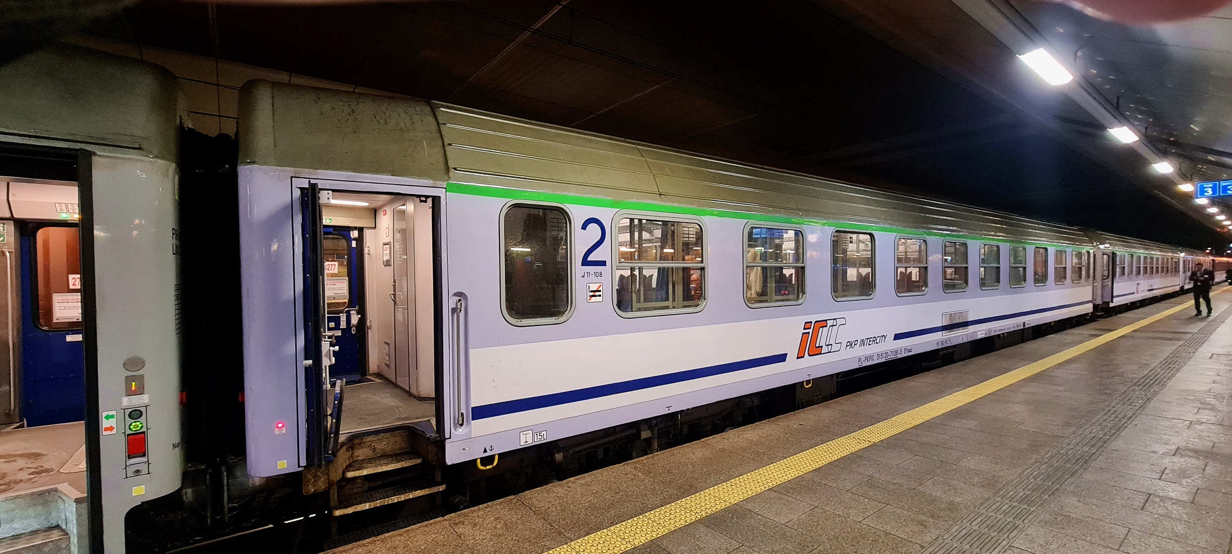 Wagon 51 51 20-71 091-5 B10nouz w składzie pociągu IC132/3802 „Saxonia”/”Chełmoński” do Lipska Głównego i Świnoujścia. (Kraków Główny, 2026-02-23) |